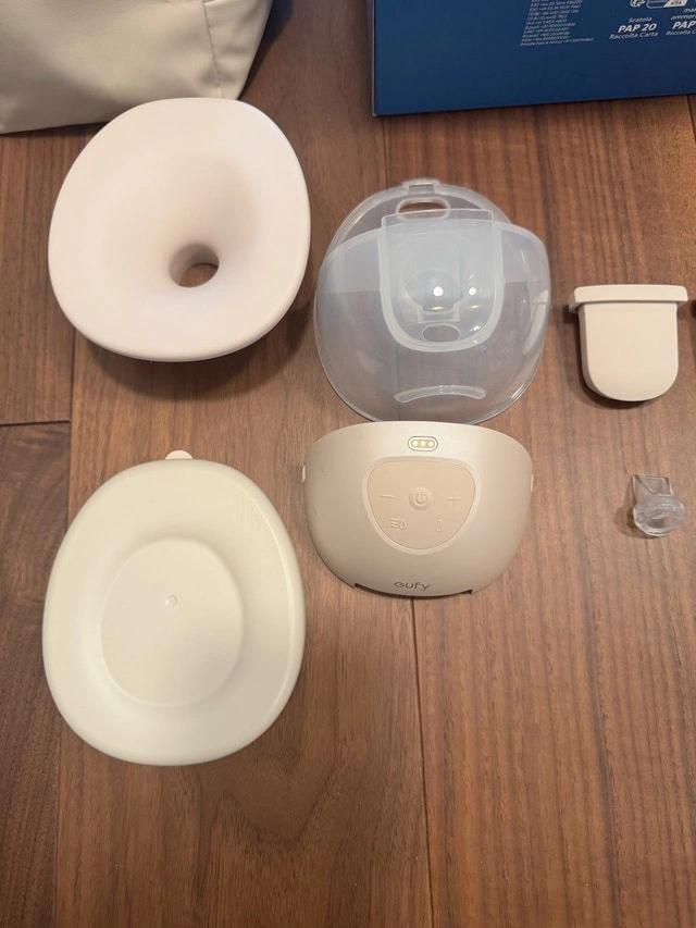 Selling a convenient, hands-free Eufy breast pump wearable S1. This portable pump includes multiple flange sizes for optimal fit and comfort, an unused cleaning brush, and a comfy bag for travel. Key features: Wearable and hands-free design, Heating/warming feature, Multiple flange sizes included, Portable and lightweight, Good quality bag. Condition: Used - Good. Cash accepted.