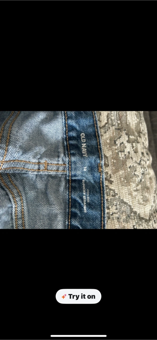 Light wash denim jeans from Old Navy. Straight leg style with distressed details and frayed hem. Size 12.