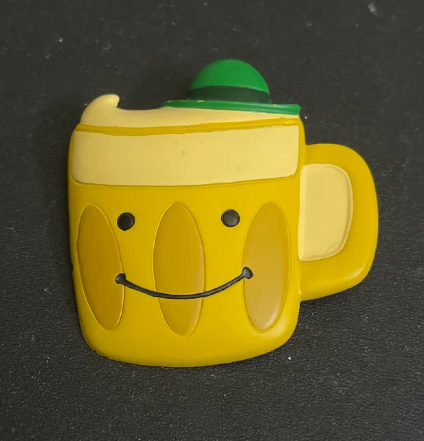 Cute beer mug/Irish Coffee, leprechaun hat pin. This pin is from Hallmark Licensing. It's a fun accessory for any jacket or bag!