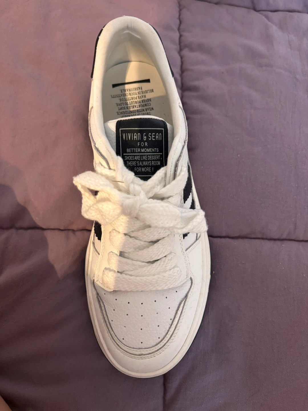 Vivian & Sean sneakers for better moments. They're made with a comfortable, durable design. These stylish shoes feature a classic white and black colourway with lace-up closure. They're perfect for everyday wear!