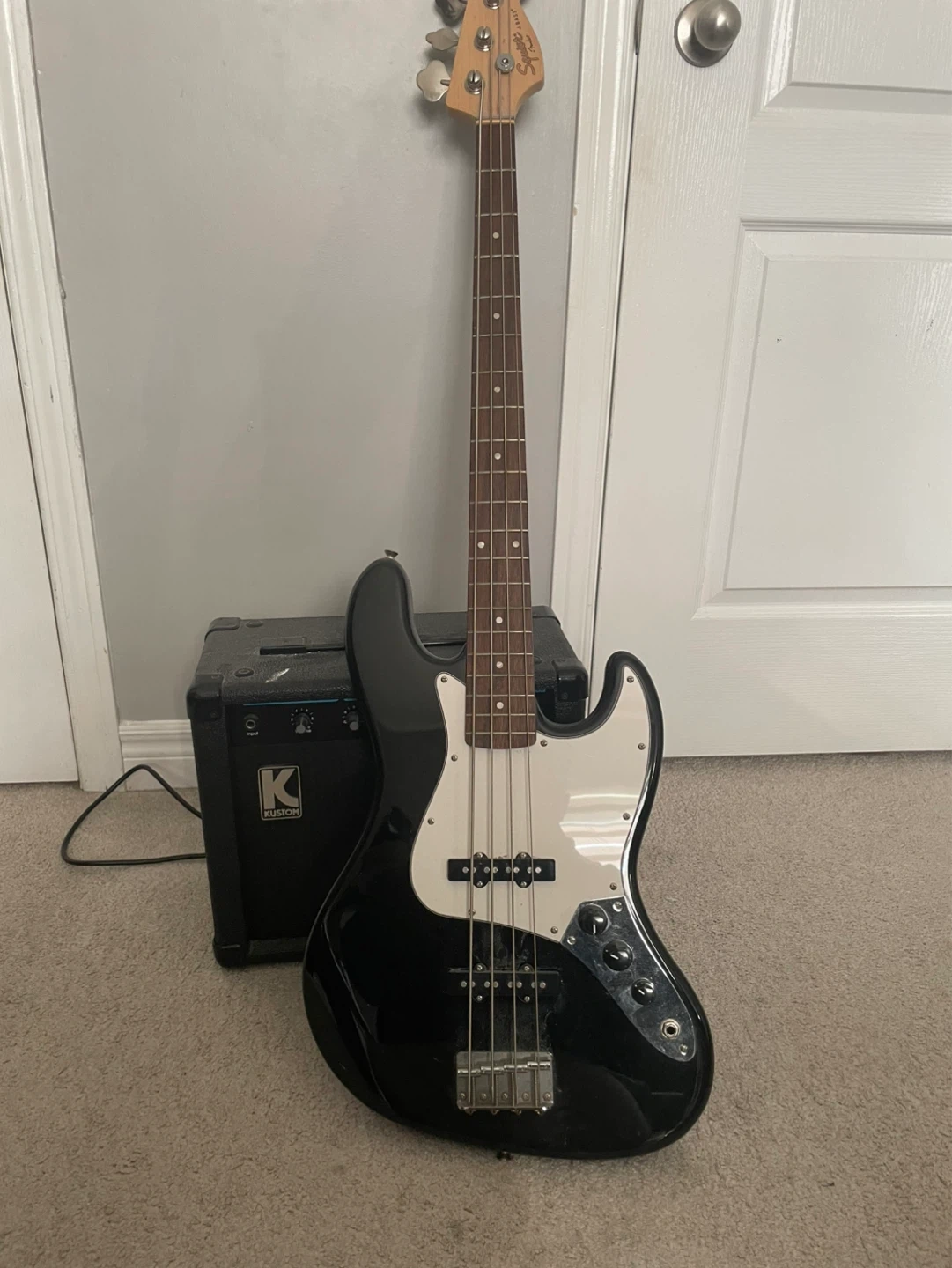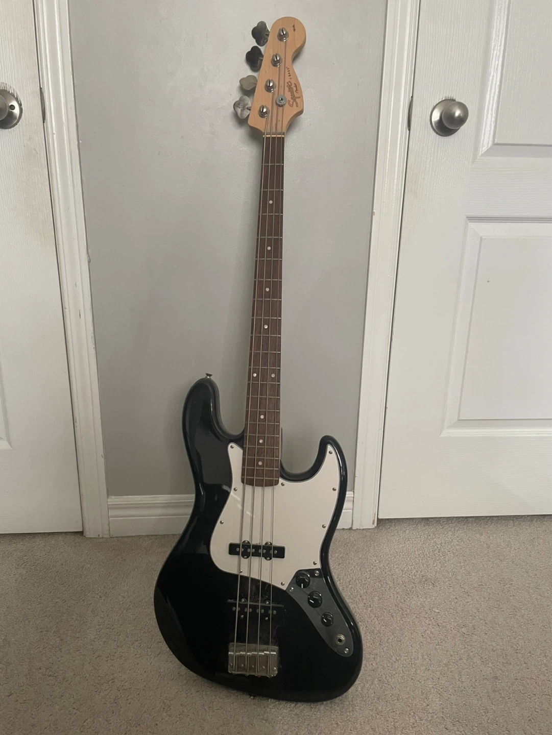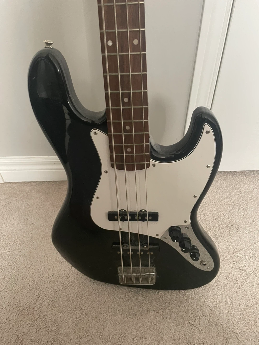 β’ Squier 4-string bass (black, classic style)
