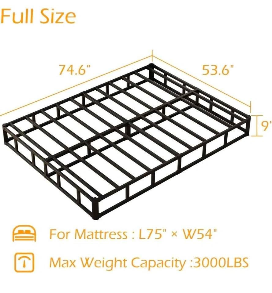 Heavy-duty metal box spring / mattress foundation for full-size beds. Strong steel frame provides excellent support and eliminates the need for a traditional box spring.