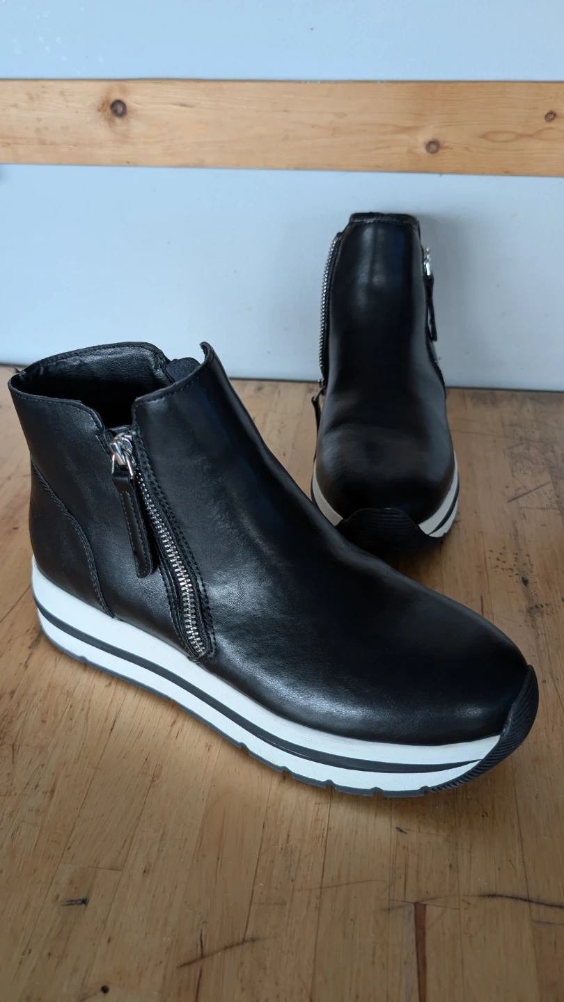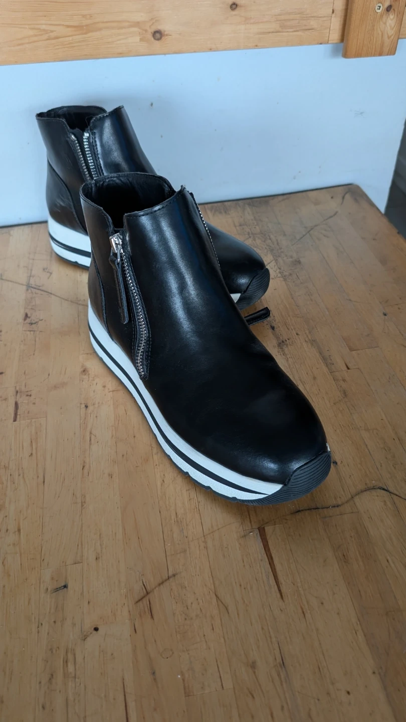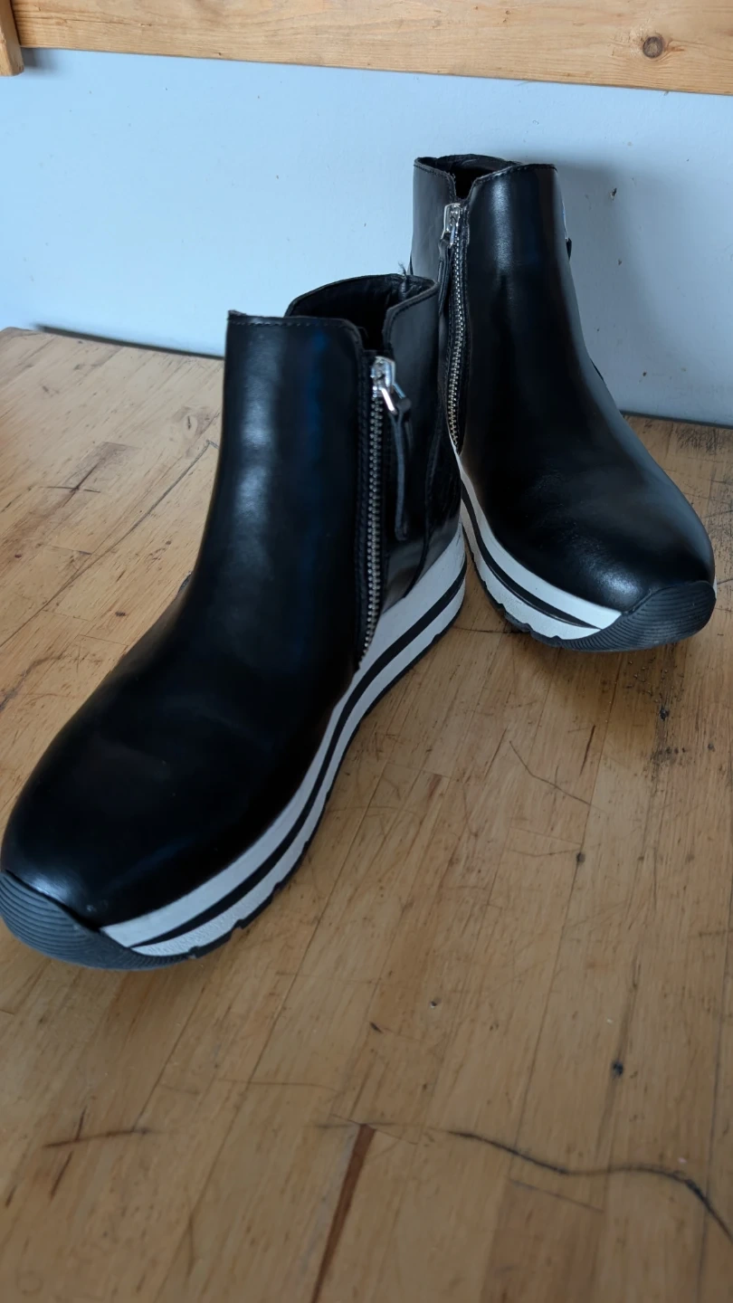 Black Wedge Ankle Boots with Side Zippers on both sides