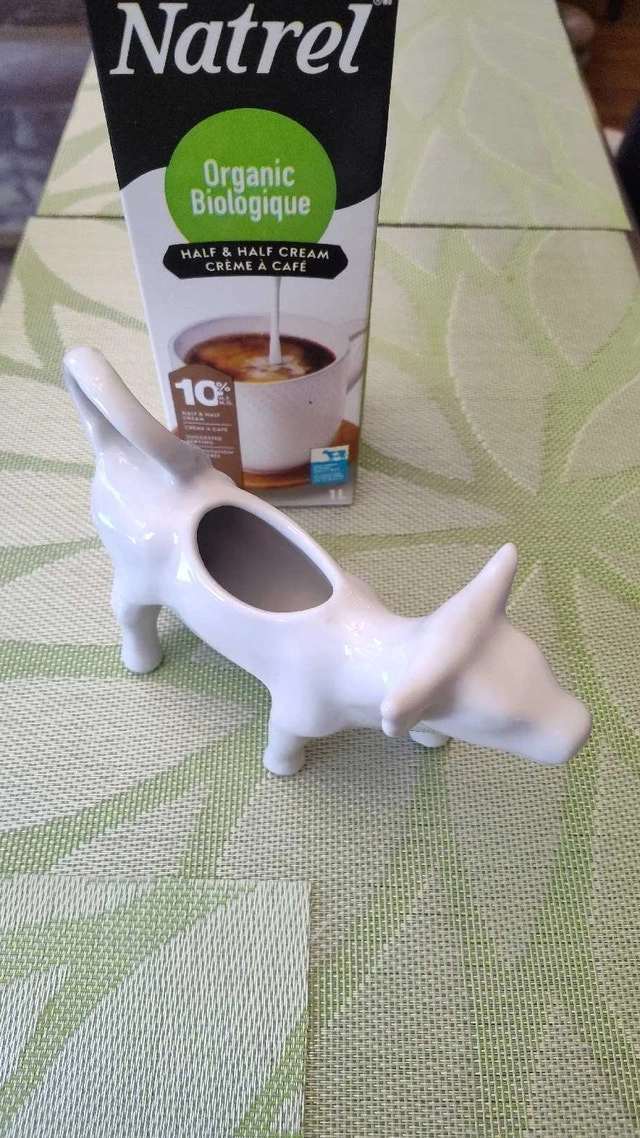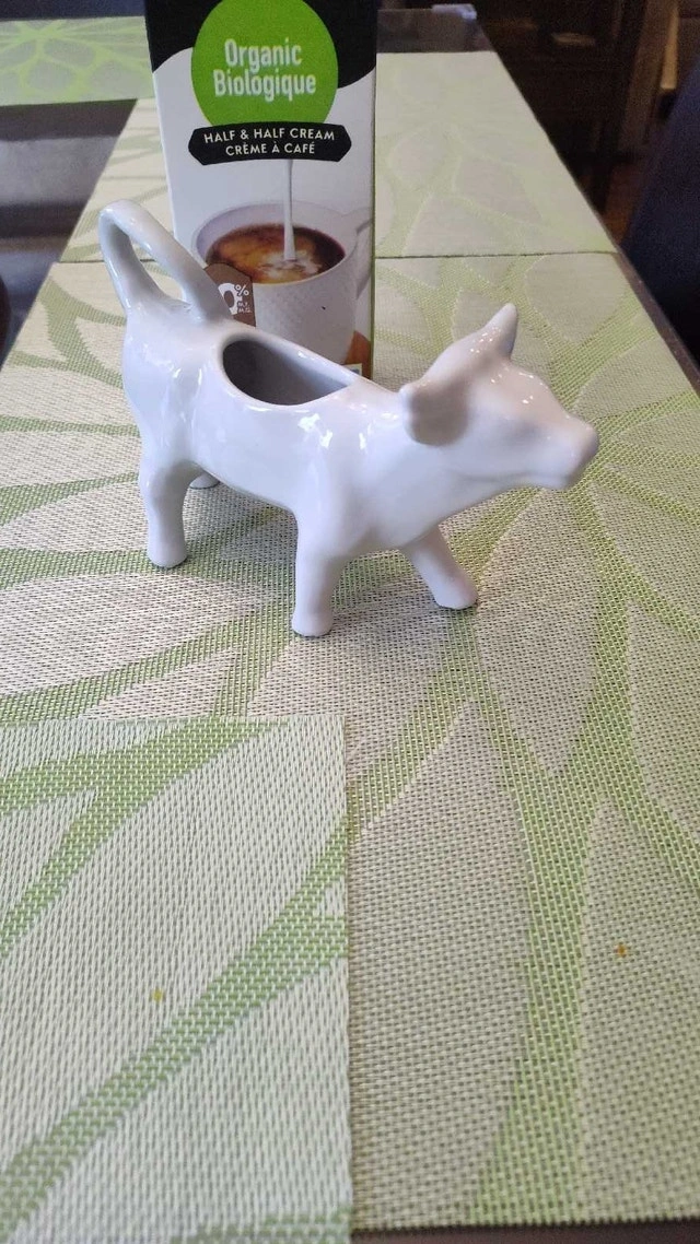 Add a touch of whimsy to your kitchen or dining area with this adorable ceramic cow creamer! This charming piece is in good condition and ready to moo-ve into your home. It is a unique and playful way to serve cream, sauces, or dressings. This is the medium-sized cow pitcher, which is 7 inches long, not the smaller version. Pick up in the Lisgar area of Mississauga near Ninth Line and Britannia Rd. If the ad is up, it's available!