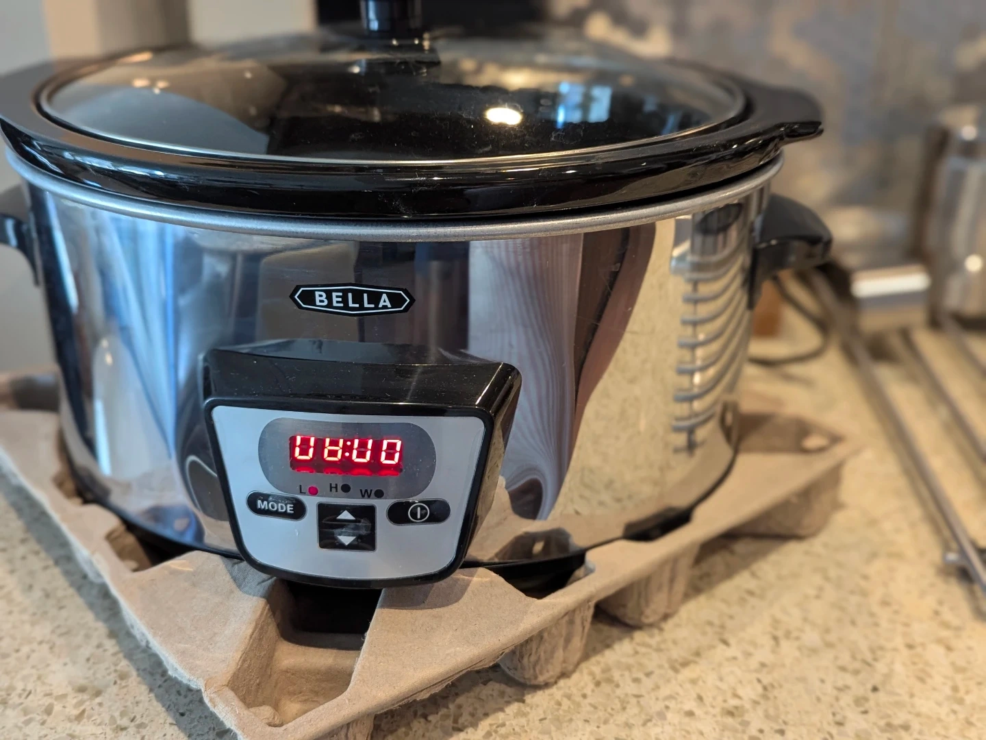 This BELLA 5-quart programmable slow cooker is perfect for preparing family meals. It features a tempered glass lid and a removable stoneware pot. The digital control panel offers multiple settings for convenience.