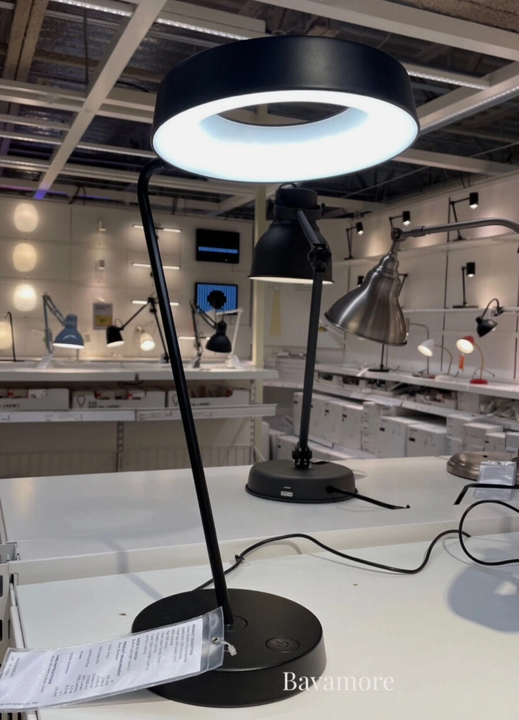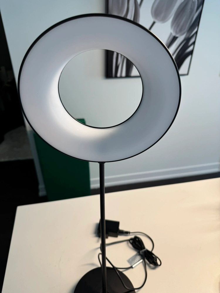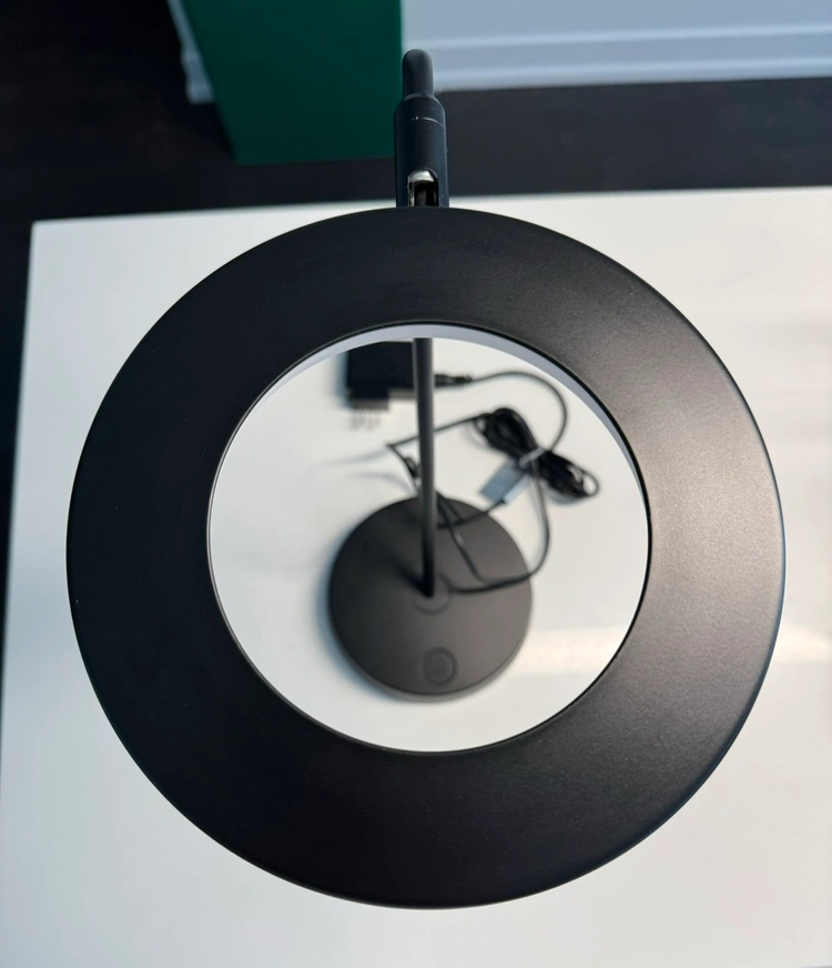 Ikea Obegransad LED desk lamp with a circular light and different colour temperatures. Includes a power cord and adapter. Limited edition, ikea doesn’t sell it anymore