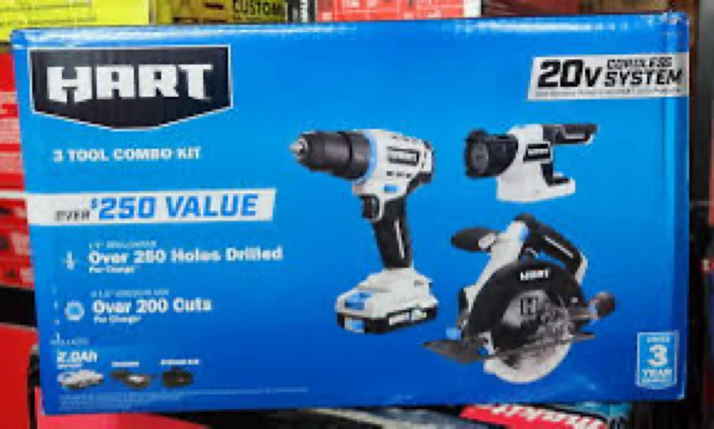 Get a HART 20V 3-tool combo kit! It includes a cordless drill, impact driver, and circular saw. Batteries and charger are included for this power system.