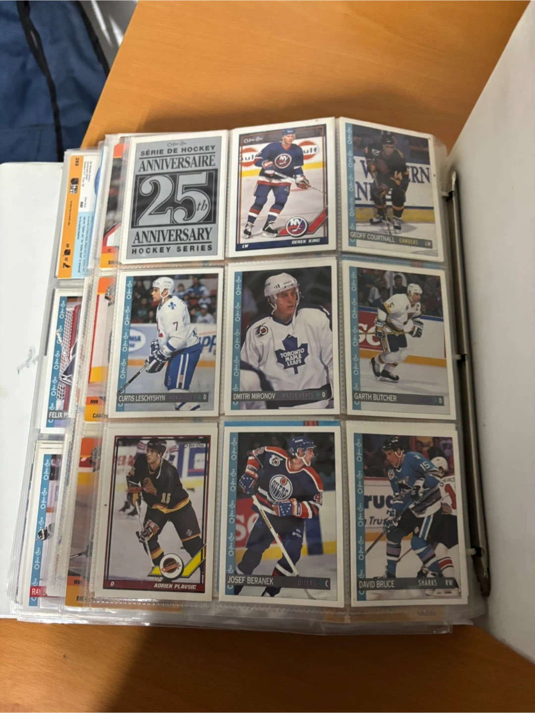 A collection of Pro Set hockey cards, featuring various players and teams. Includes cards from the 25th Anniversary Hockey Series. Great for any hockey memorabilia enthusiast!