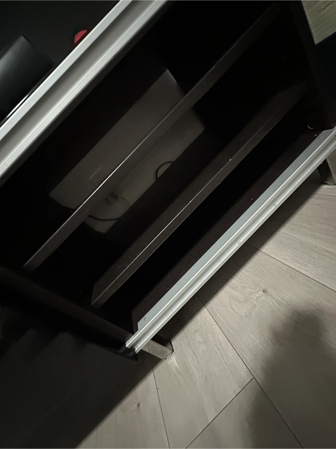 Selling a sleek black TV stand with convenient shelving! It's in great shape and ready to hold your television upto 55 inch and media components. The stand features a sliding door and sturdy construction.