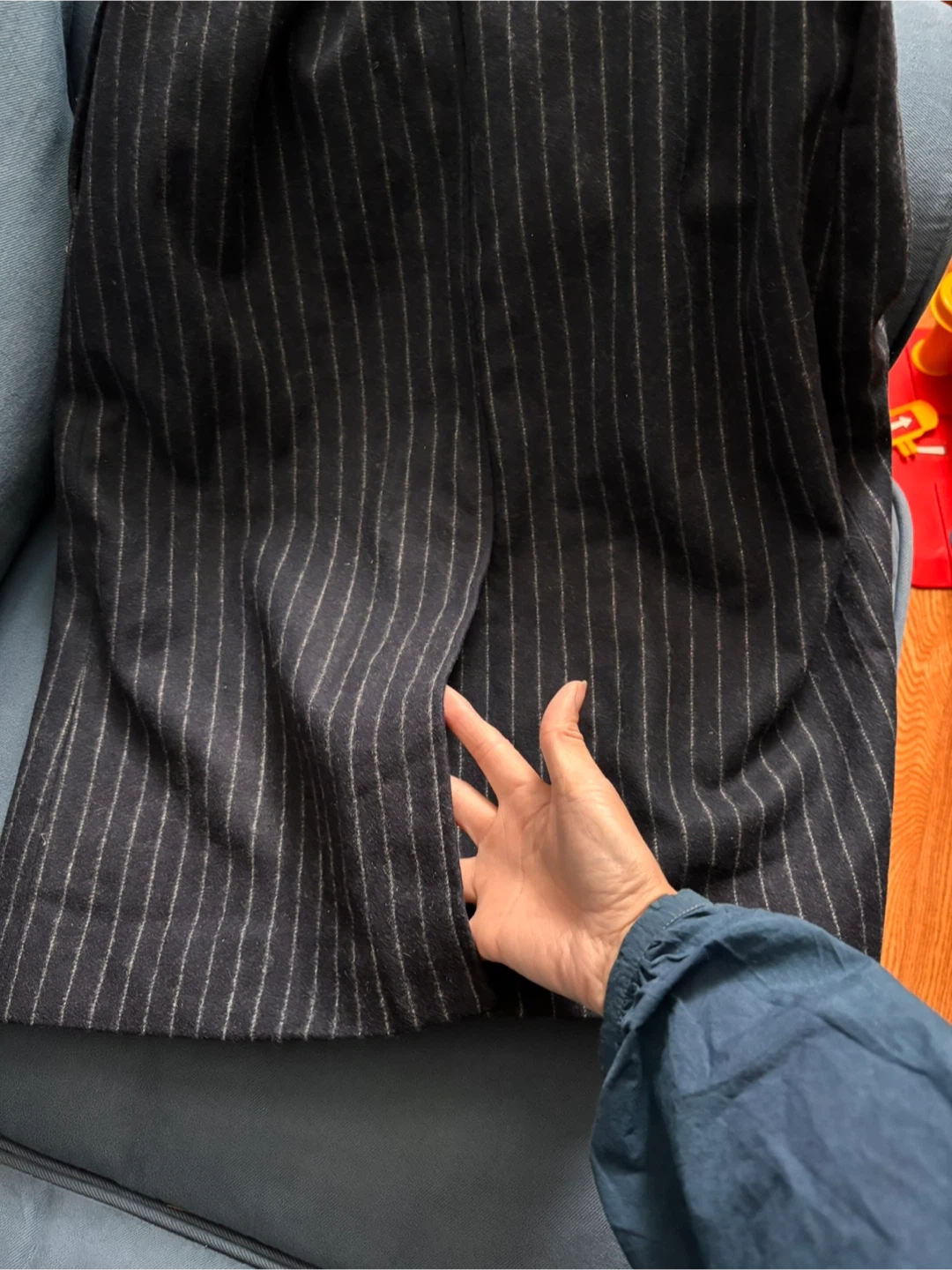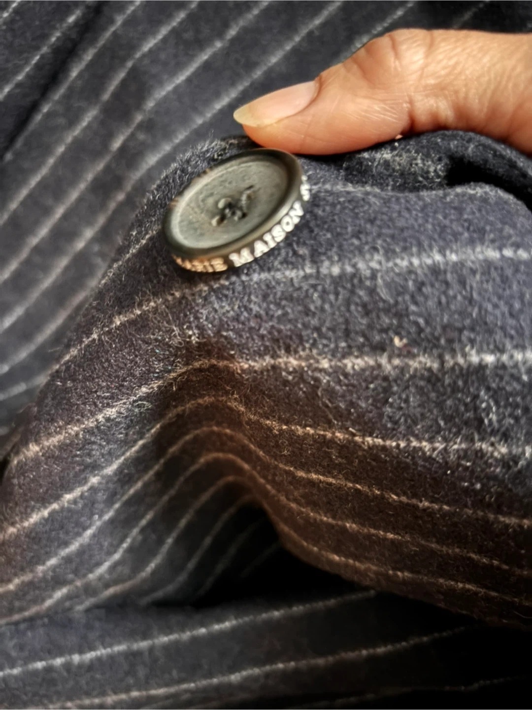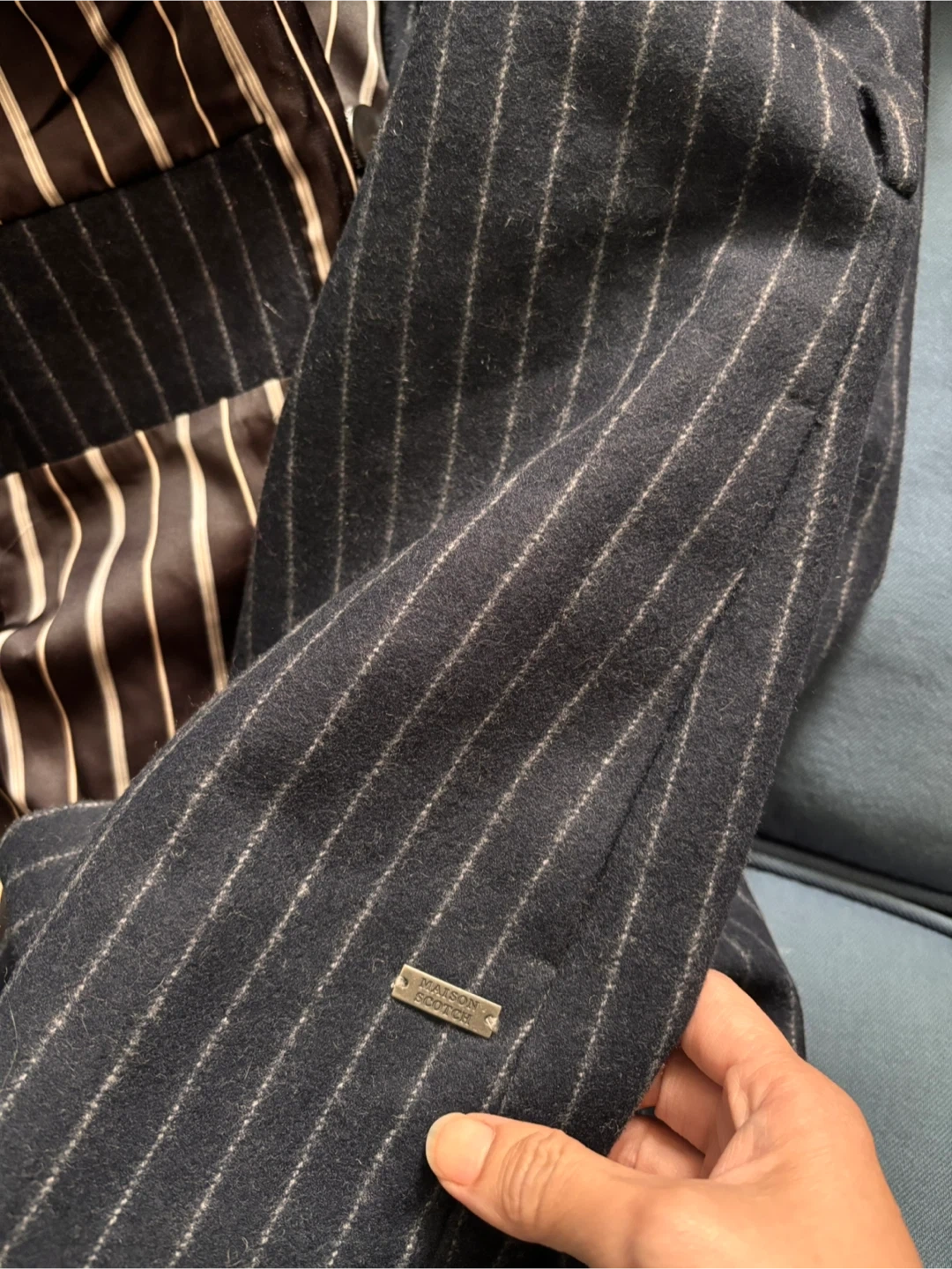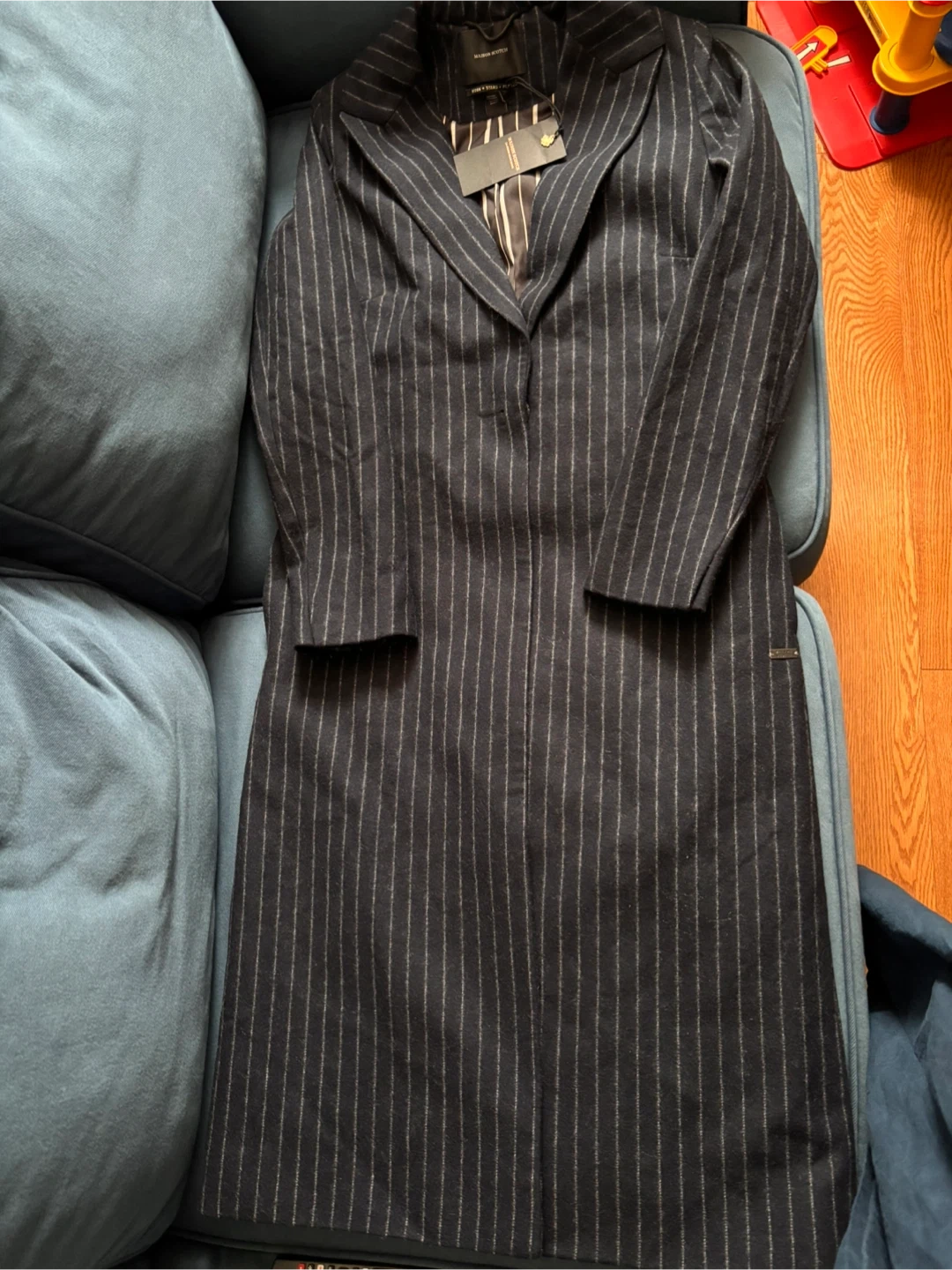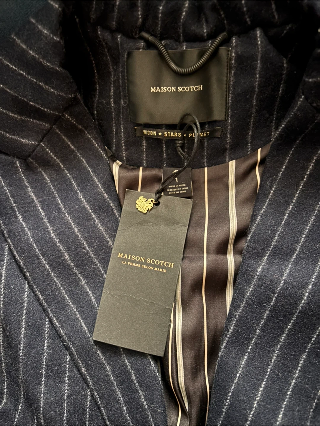 A stylish Maison Scotch wool blended long coat with a unique striped pattern. Very detailed.