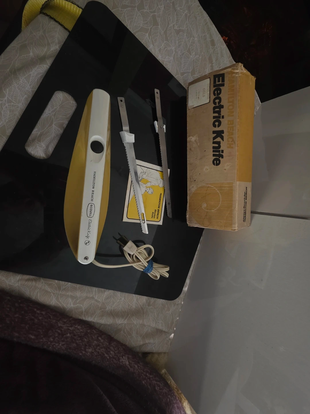 This item is a vintage Hamilton Beach (Scovill) electric carving knife set, likely from the 1960s or 1970s, which is considered a collectible appliance.