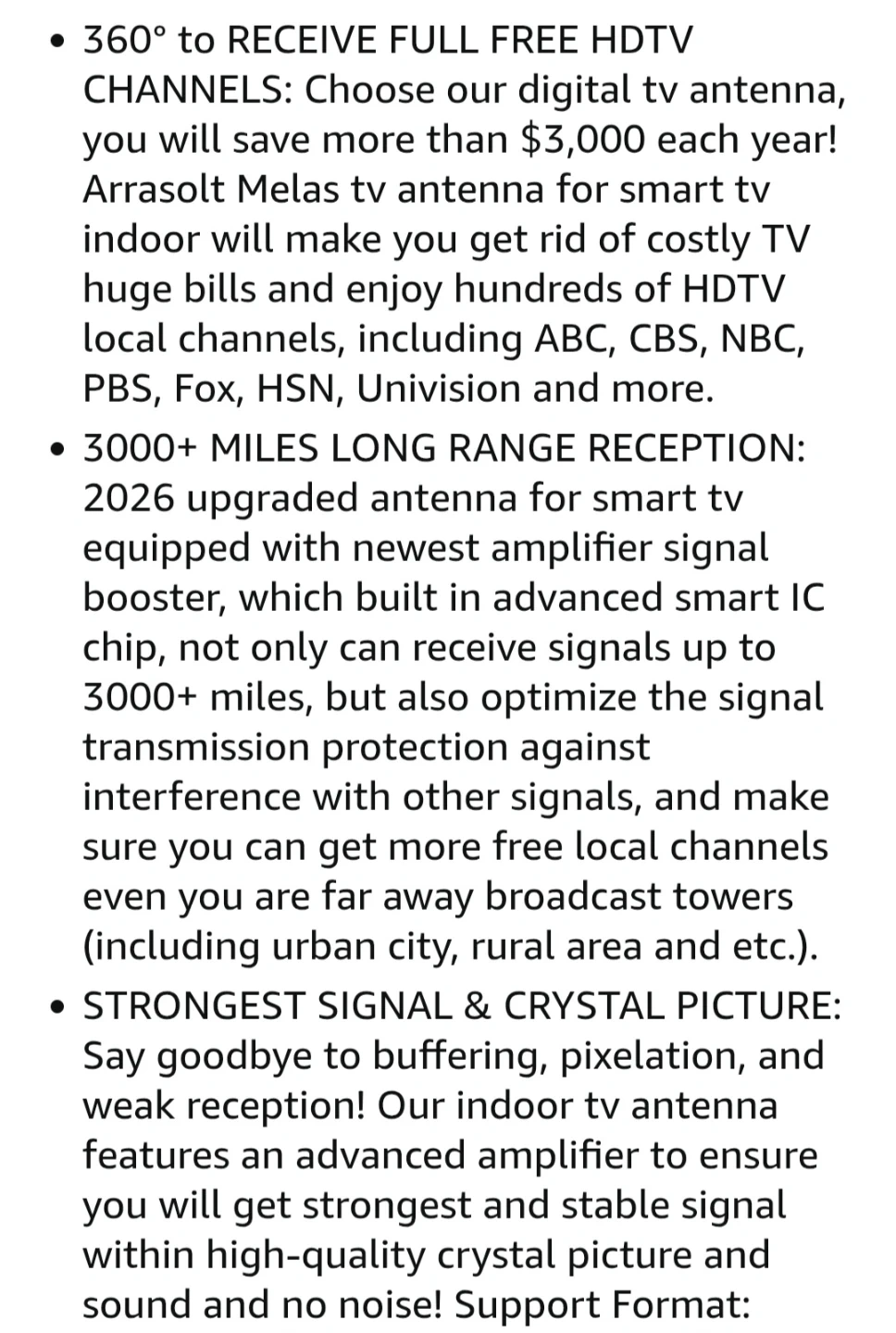 This is a digital HDTV antenna that supports 4K Ultra HD and Full HD. It's suitable for indoor or outdoor use and can be mounted on a table or wall. It provides freeview channels.