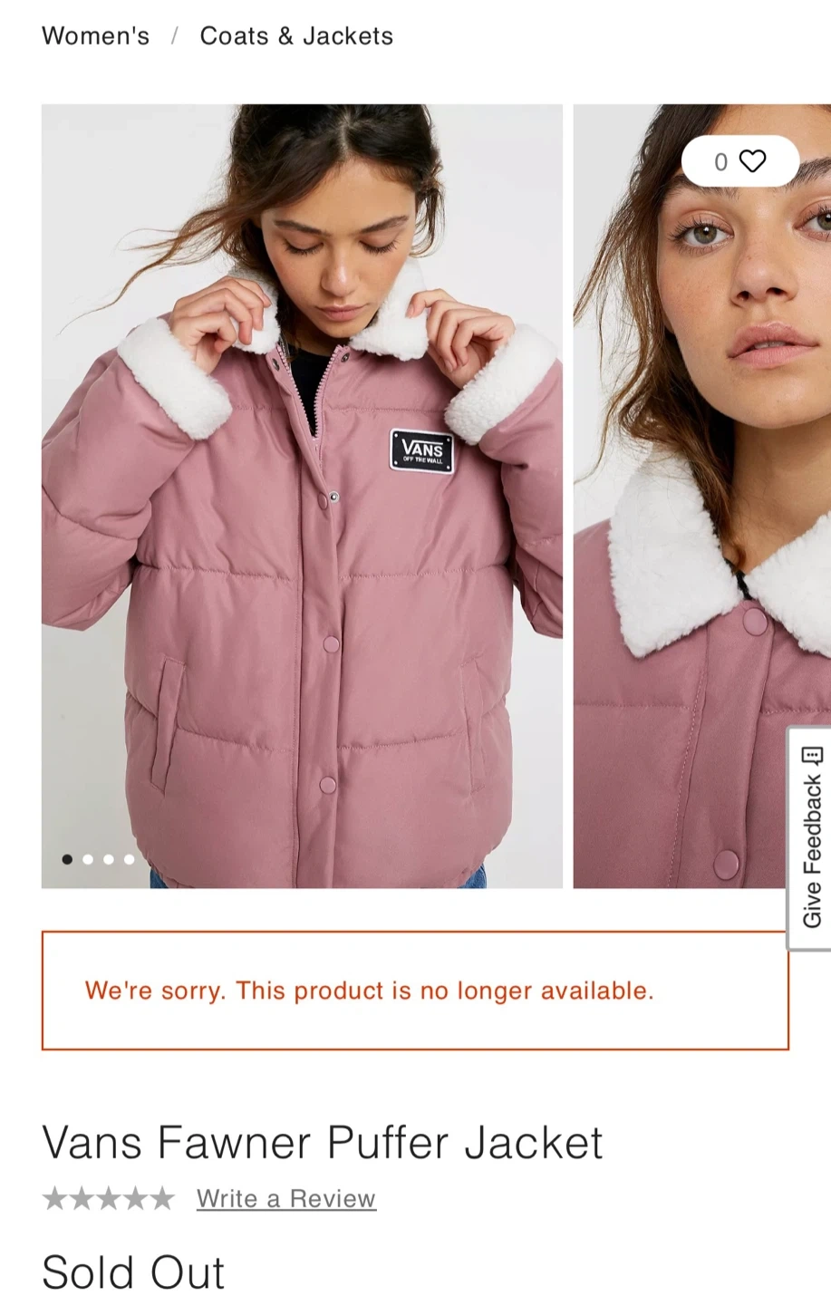 Selling Vans Fawner Puffer Jacket/Sherpa Collar