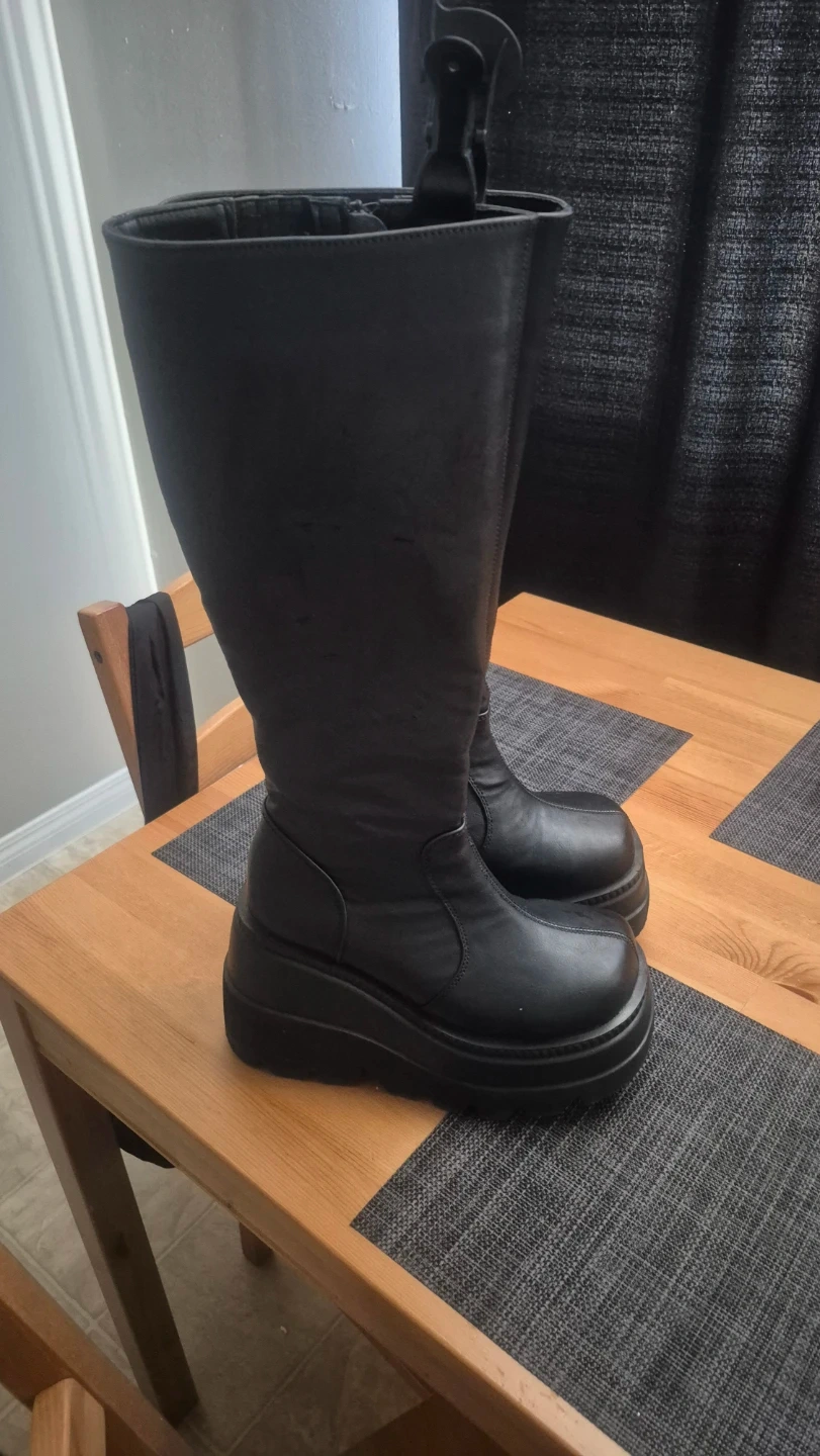 Demonia Women's Shaker-100 Wedge Platform Knee High Boots