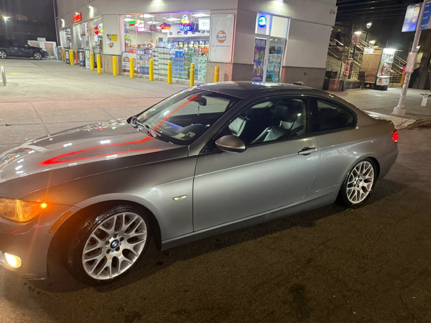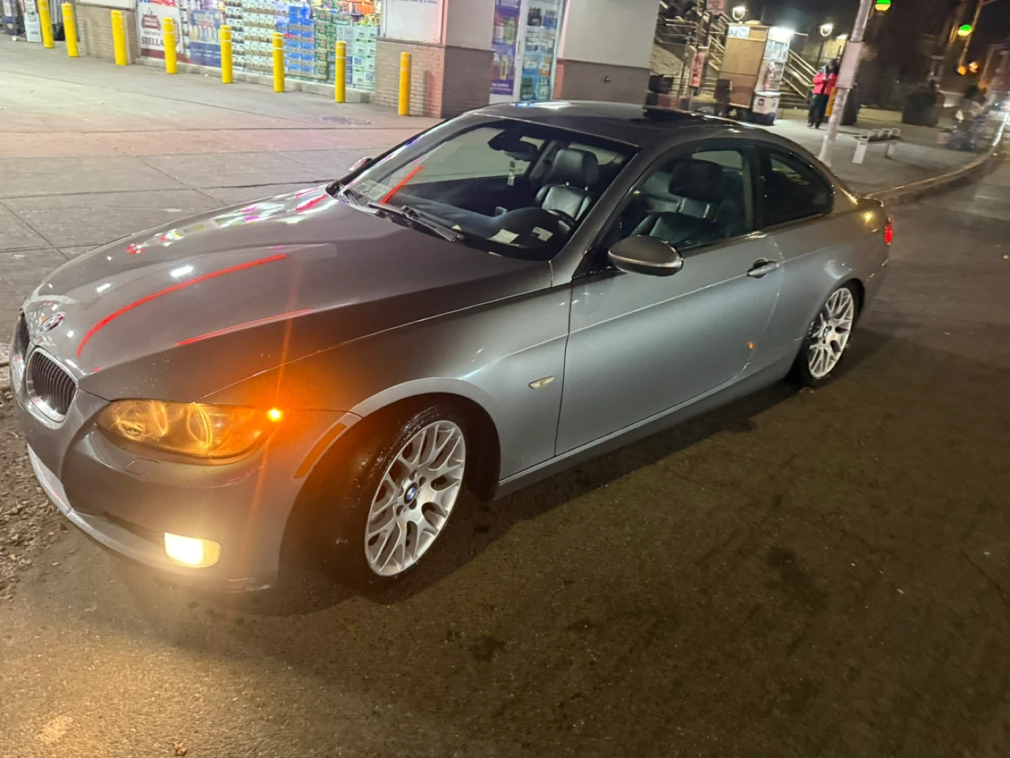 Silver BMW 3 Series coupe with a sunroof. It's a stylish two-door vehicle. Interior looks clean and well-maintained. Features alloy wheels and a sleek design.