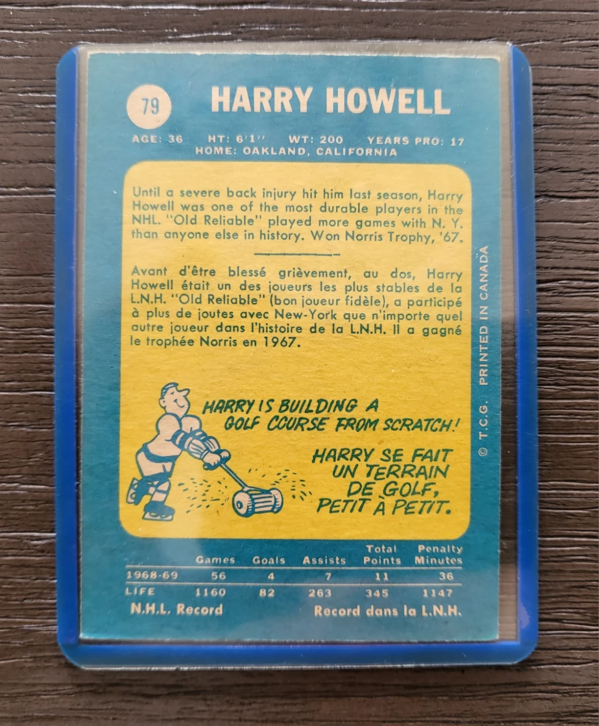 This is a 1968-69 O Pee - Chee vintage hockey card featuring Harry Howell from the Oakland Seals.