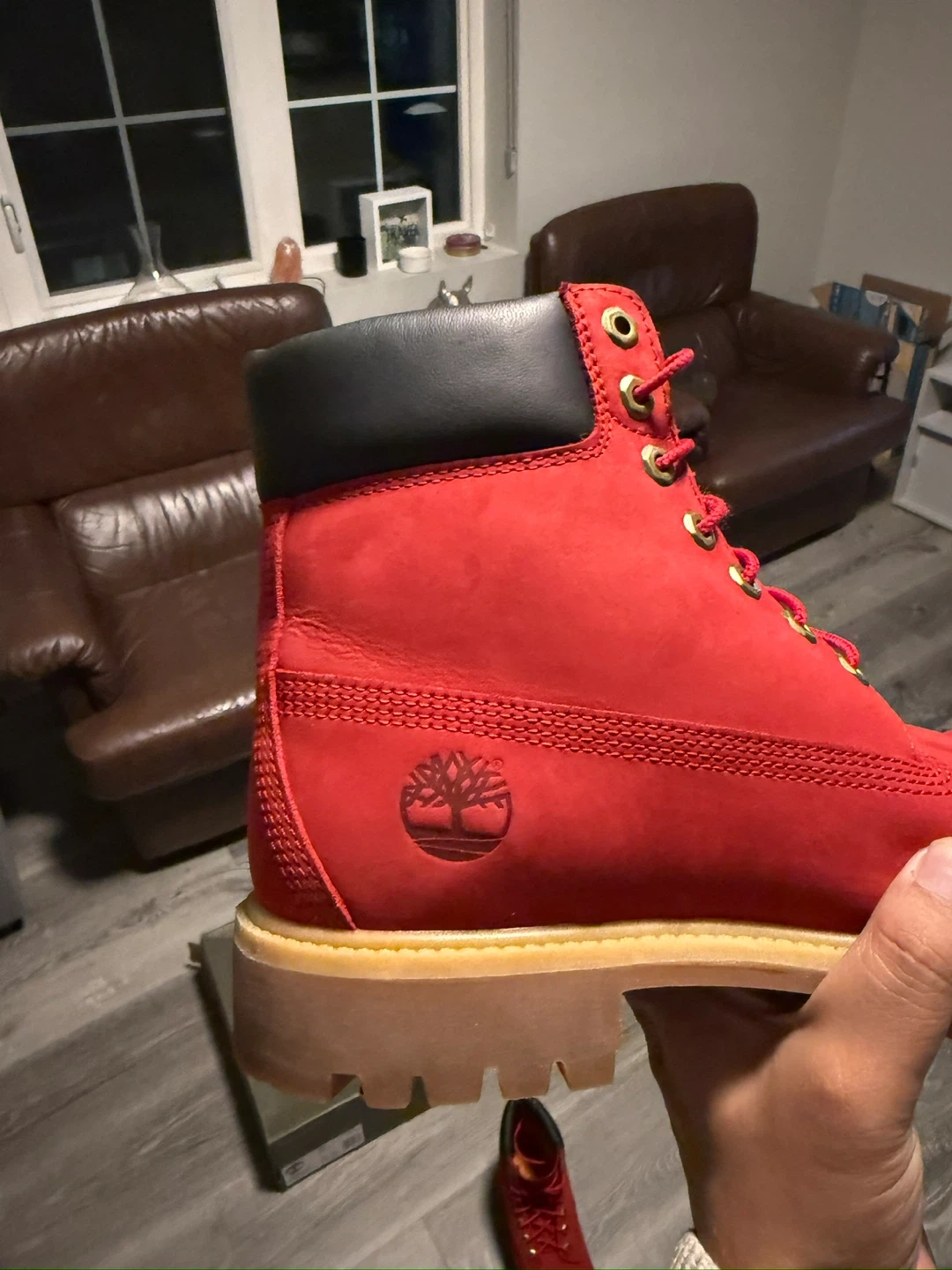 Selling my red Timberlands. I picked these up mid-last year but only ended up wearing them maybe 7 or 8 times total. They’ve mostly just been sitting in the closet, so they’re still in great shape and have a ton of life left in them.