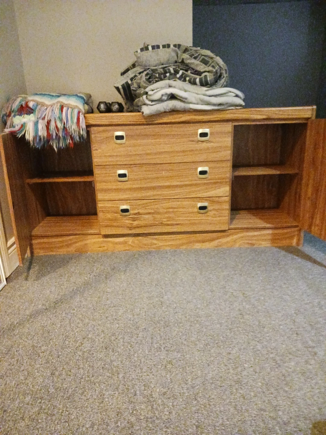 Wooden Dresser with 3 Drawers and Cabinet Doors