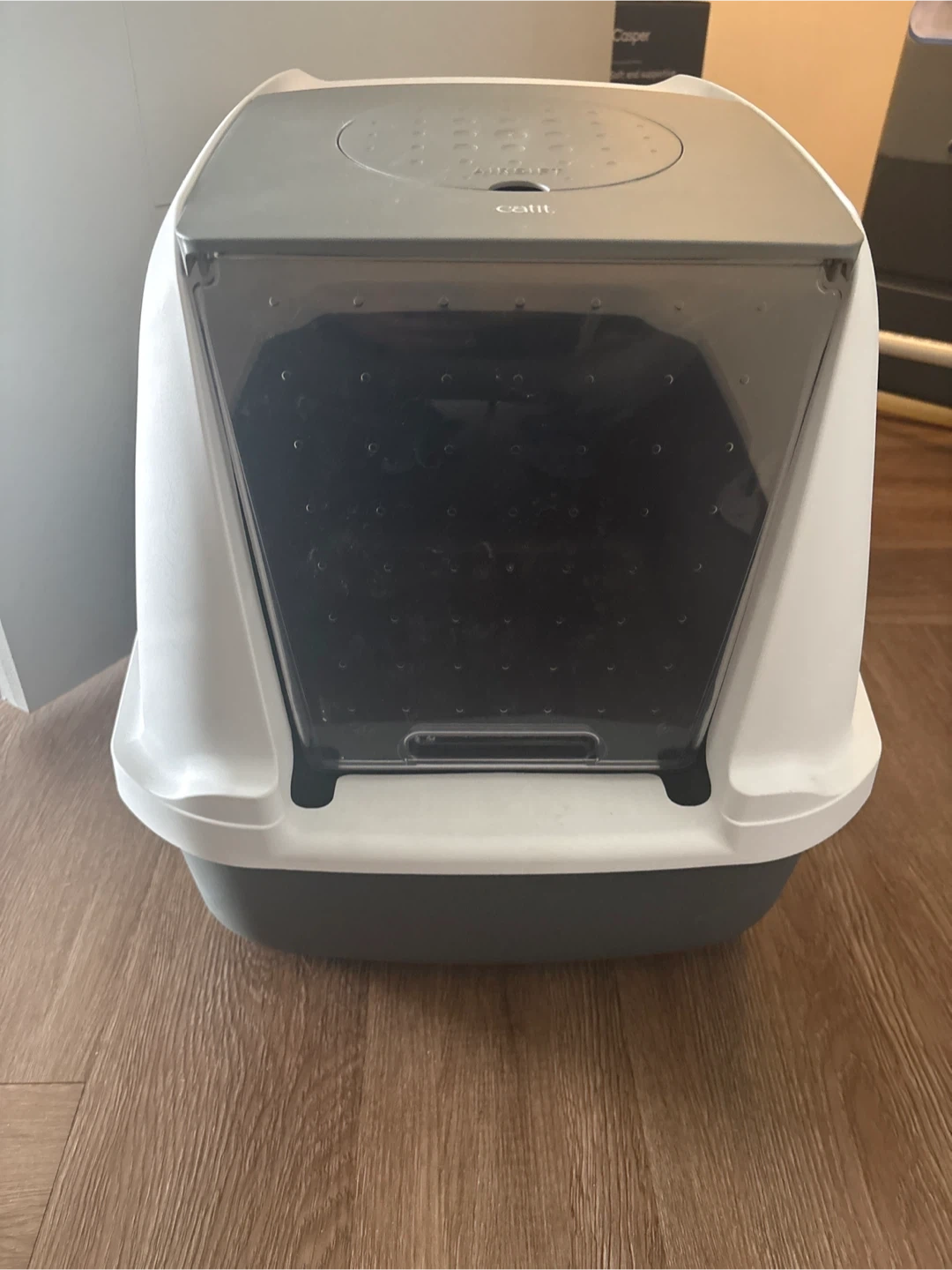 Large size cat litter box that is like new and clean. Was used 3 times by a cat, and then cleaned out right away. The lid can lock onto the base as well. Purchases at Petland for $60. Pickup only in marda loop SW. Cash only please!