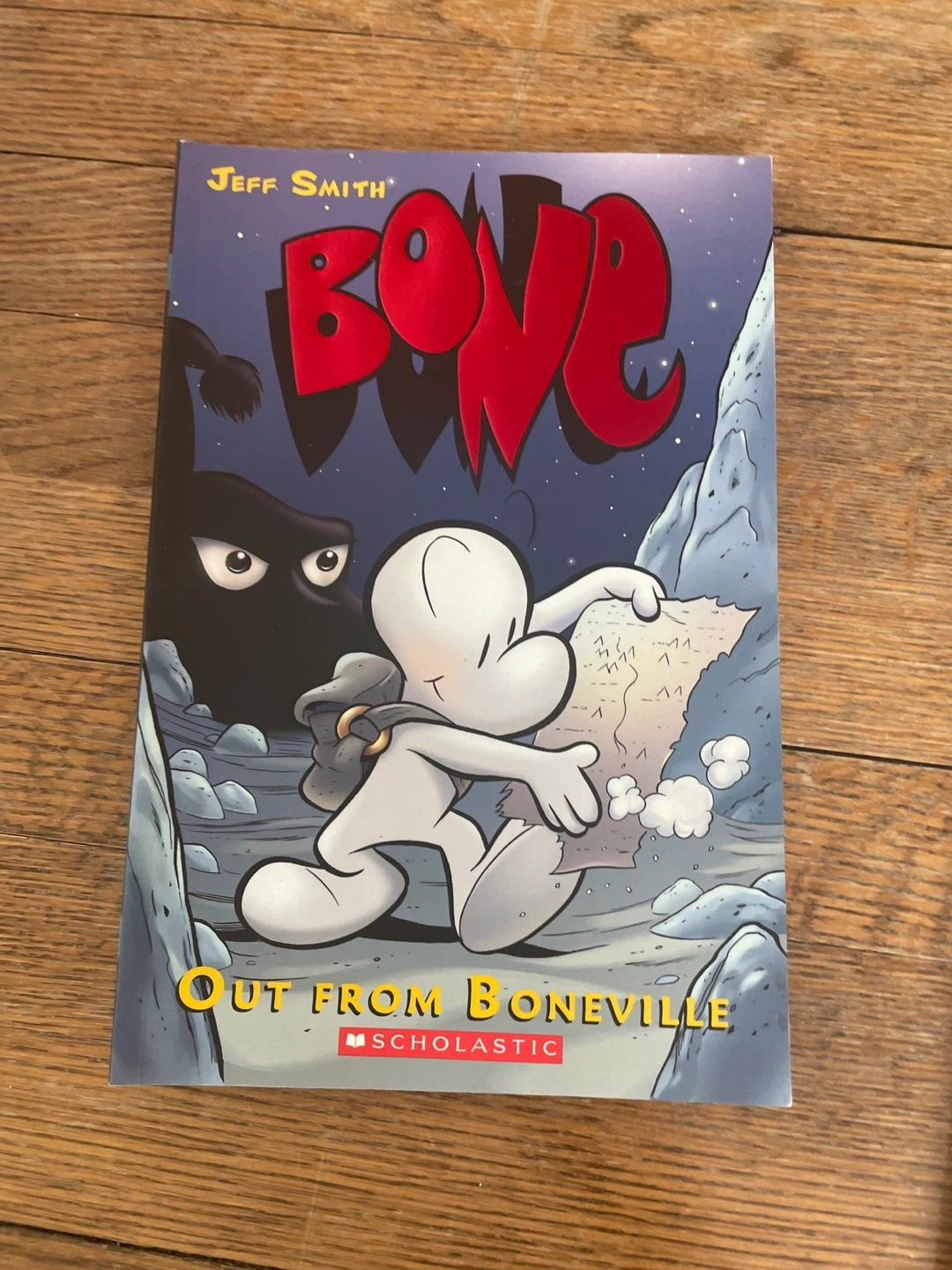A collection of Jeff Smith's BONE graphic novels. Includes 'The Dragonslayer', 'Eyes of the Storm', 'The Great Cow Race', 'Out From Boneville', and more. Published by Scholastic. Great for fantasy lover.