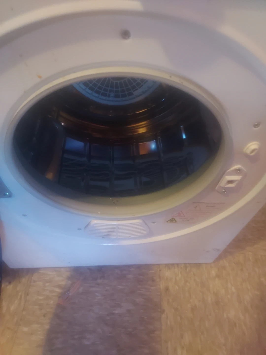 This is a Santern compact clothes dryer. It's white and has a control dial with timer and heat settings. It's a great option for small spaces!