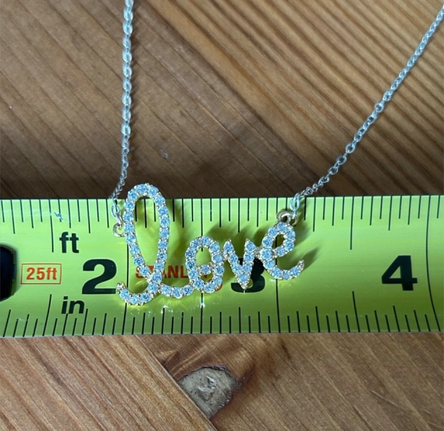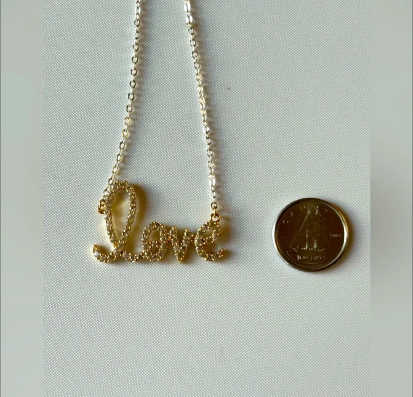 BRAND NEW/UNWORN. The word LOVE is a really hard to find larger size, it’s not tiny!!! The stones are CZ/cubic zirconia that are VERY BLINGY/GLITTERY and the chain is VERY BRIGHT SILVER, ULTRA SHINEY 925 sterling silver, and the pendant part is also made of sterling silver base metal but it plated and layered in 14k YELLOW GOLD plating. If you like mixing metals/colour, this is for you!! Its stunning!!