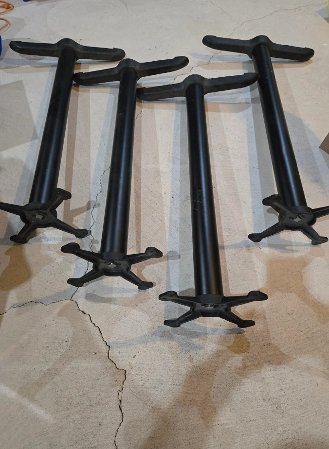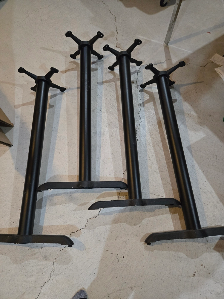 Selling a set of four sturdy black metal table bases. They're in great shape and ready to support your next DIY table project! Perfect for restaurants, cafes, or your home. 40" height, 21.5" base.