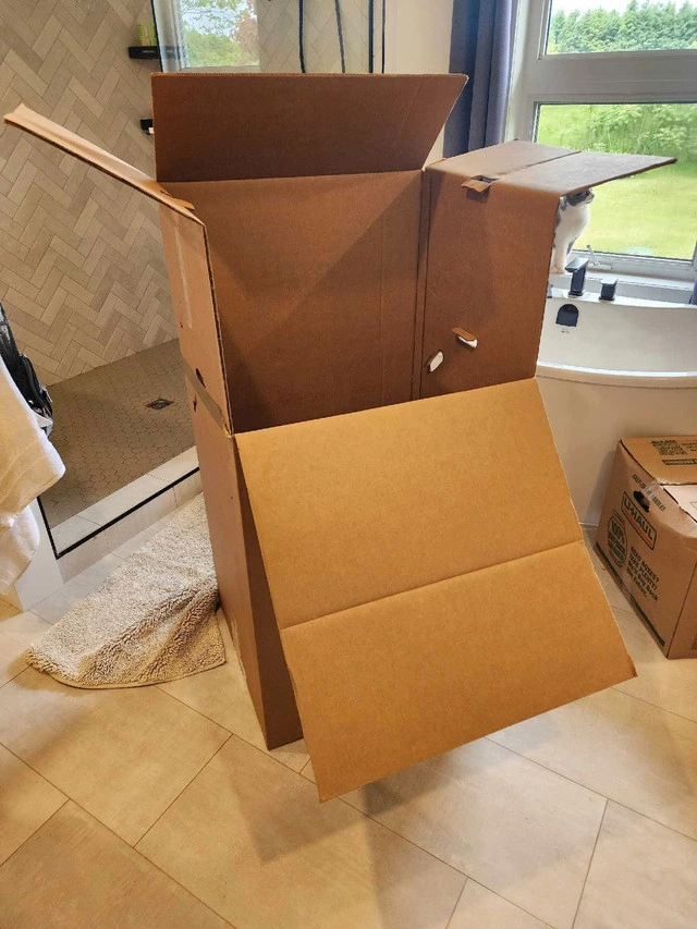 I'm selling 4 wardrobe boxes. They're used but in good condition. Two boxes are 24 x 24 x 40 inches and 2 are 18 x 21 x 40 inches. If the ad is still up, the boxes are still available!