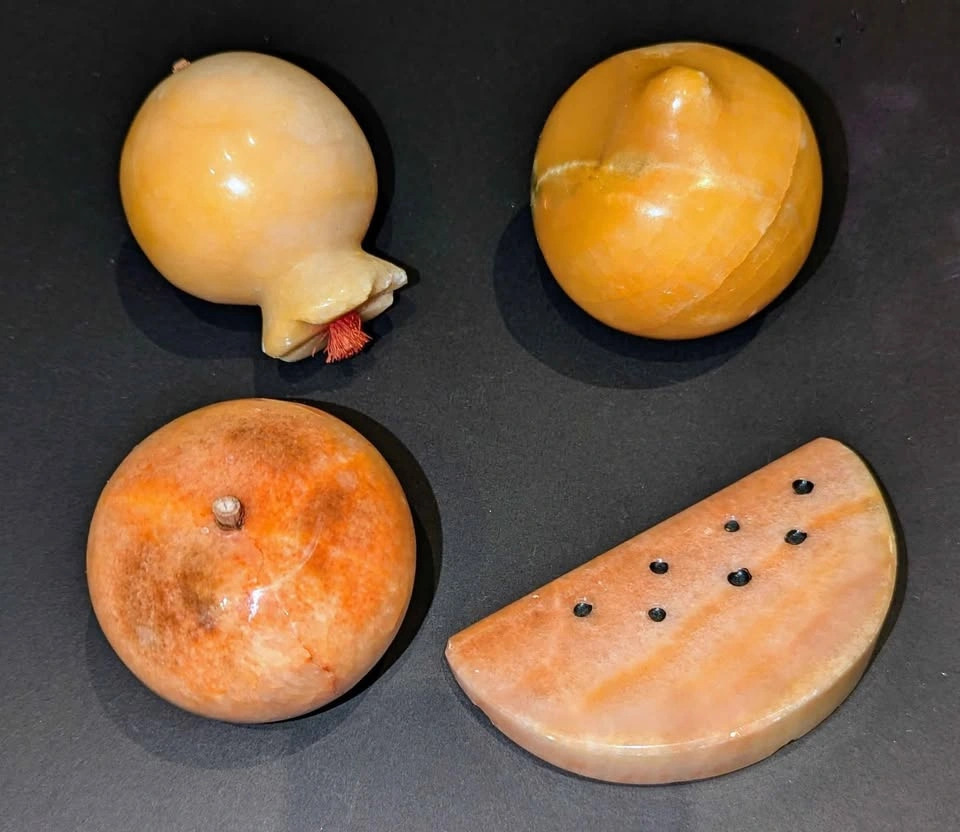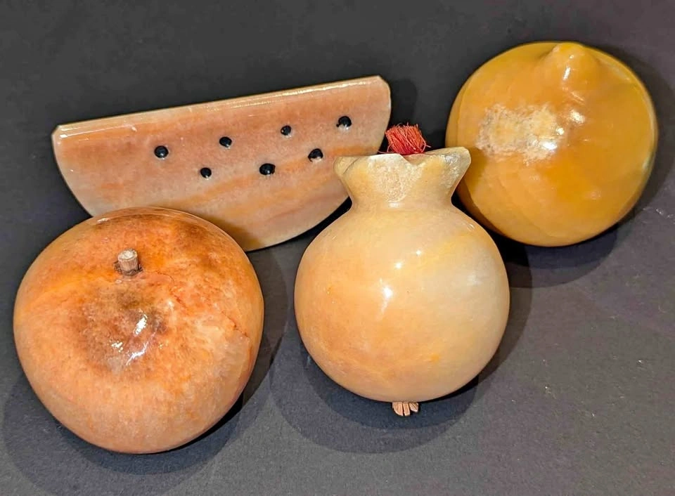 Assortment of 4 carved fruits! $20 for all (not selling individually) Persimmon (small chips around top edge) Lemon (some color imperfections) Apple (good condition) Watermelon (very minor chip at edge)