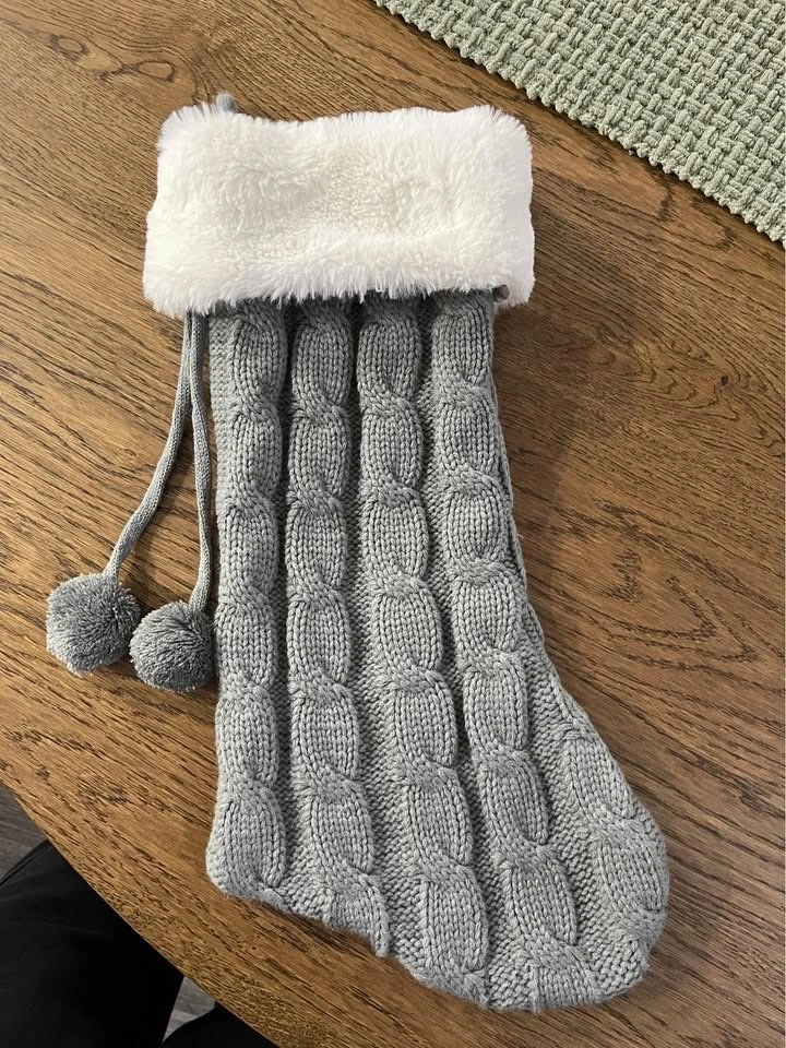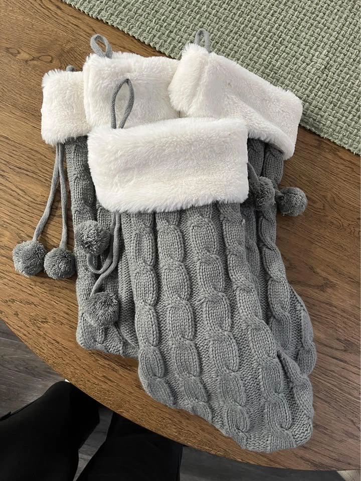 60- 4 matching knit stockings - loop to hang them - knit - grey - Asking $5 each