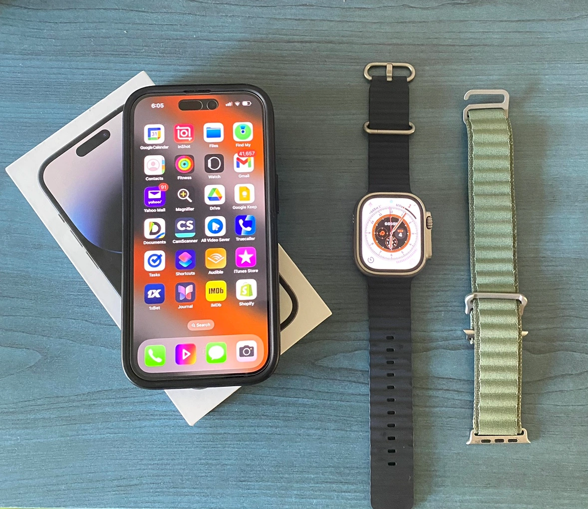 62For $1400 Get this unique deal of 4 combos instead of $1770 1) iphone 14 PRO (850$) 2) apple watch ULTRA 2 (800$) BONUS: 3) Phone shield (70$) 4) extra watch wrist ($50) All are in a semi perfect state! No scratches at all ! **individual sale possible**