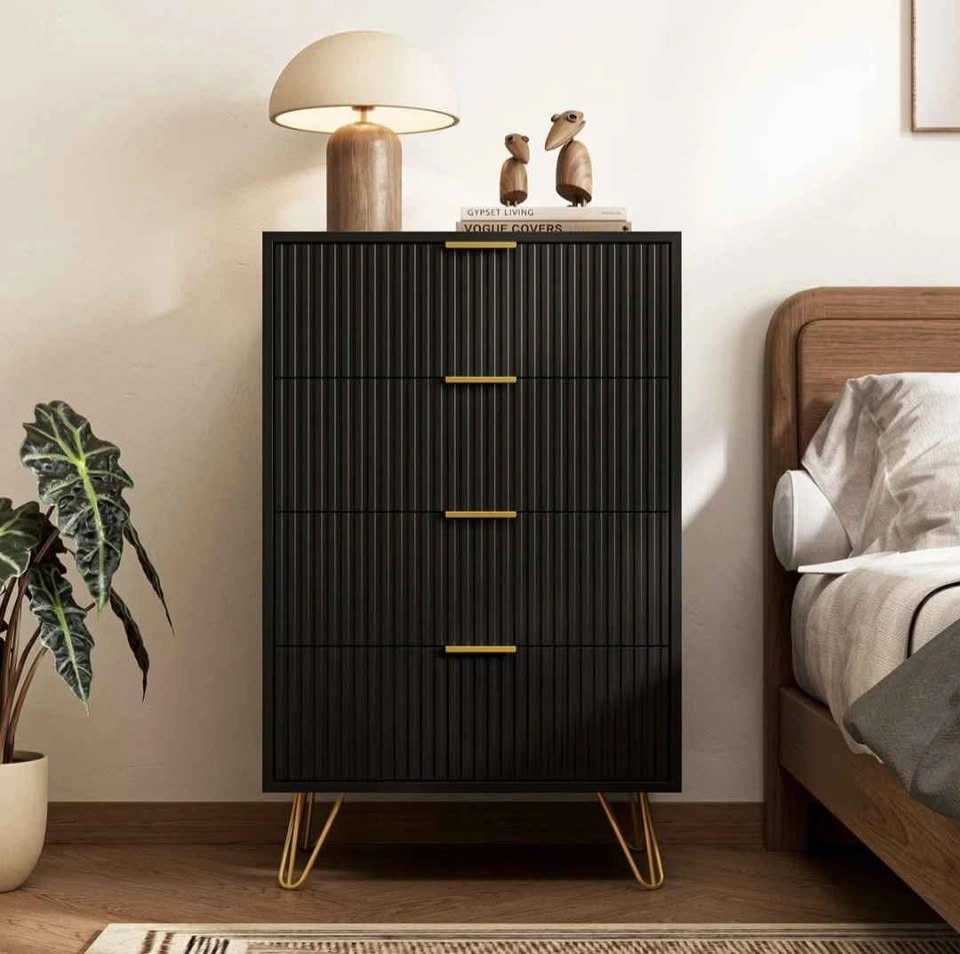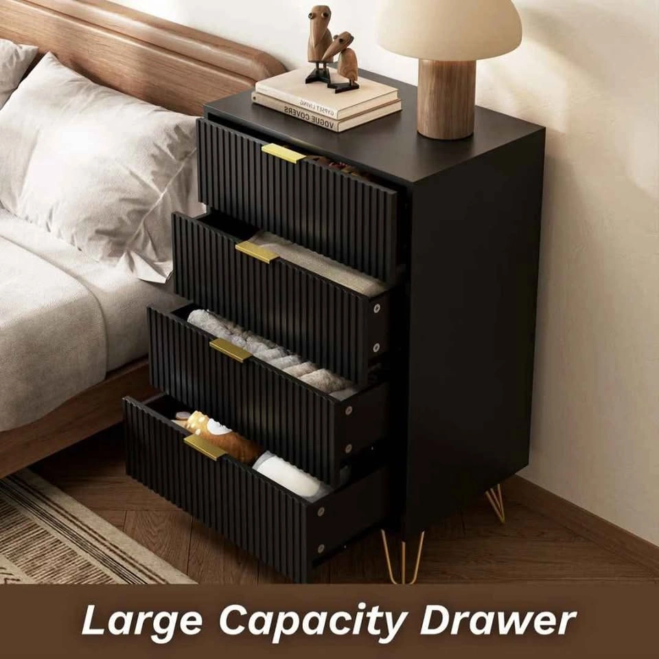 Bring both style and storage into your home with this sleek 4-drawer chest, crafted from durable high-quality MDF. The elegant striped textured panels and gold handles add a touch of modern luxury that fits effortlessly into any bedroom, living room, or hallway. * Brand new, never used, still sealed in box * 4 deep drawers, perfect for clothes, linens, or accessories * Wide tabletop, ideal for décor, lamps, or daily essentials * Anti-tip safety device for families with kids or pets Perfect for anyone who wants a tidier, more stylish space without paying retail prices. Pickup in Brampton, weekend delivery available at additional cost. Open to reasonable offers!