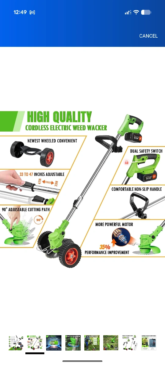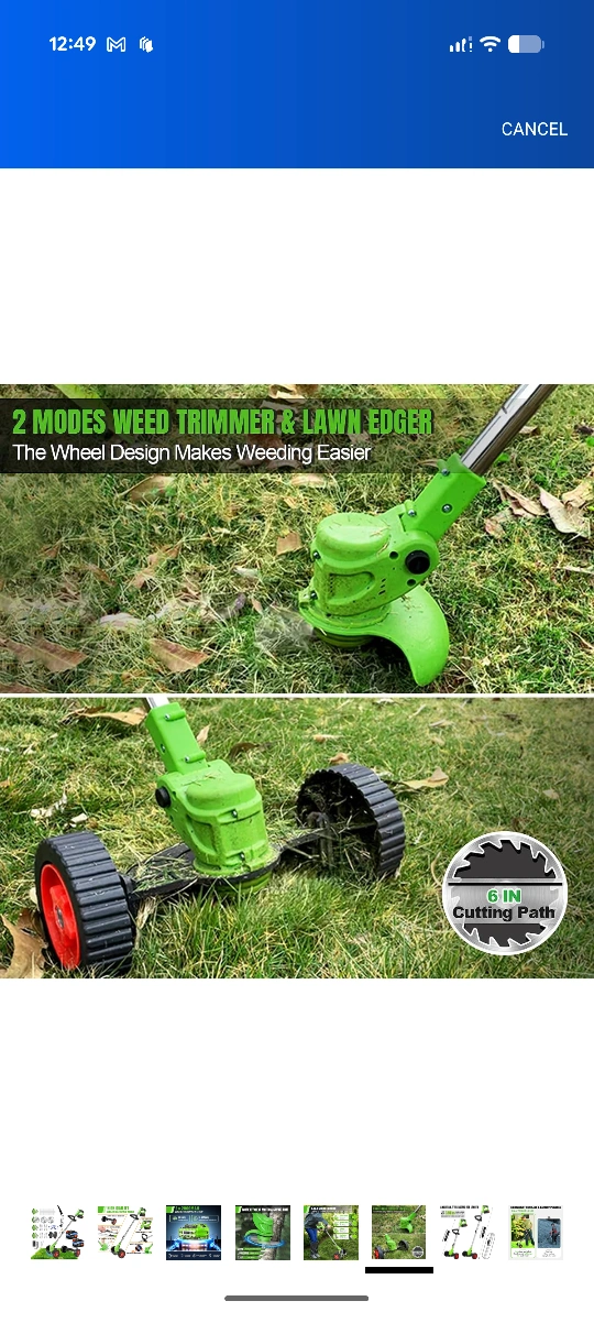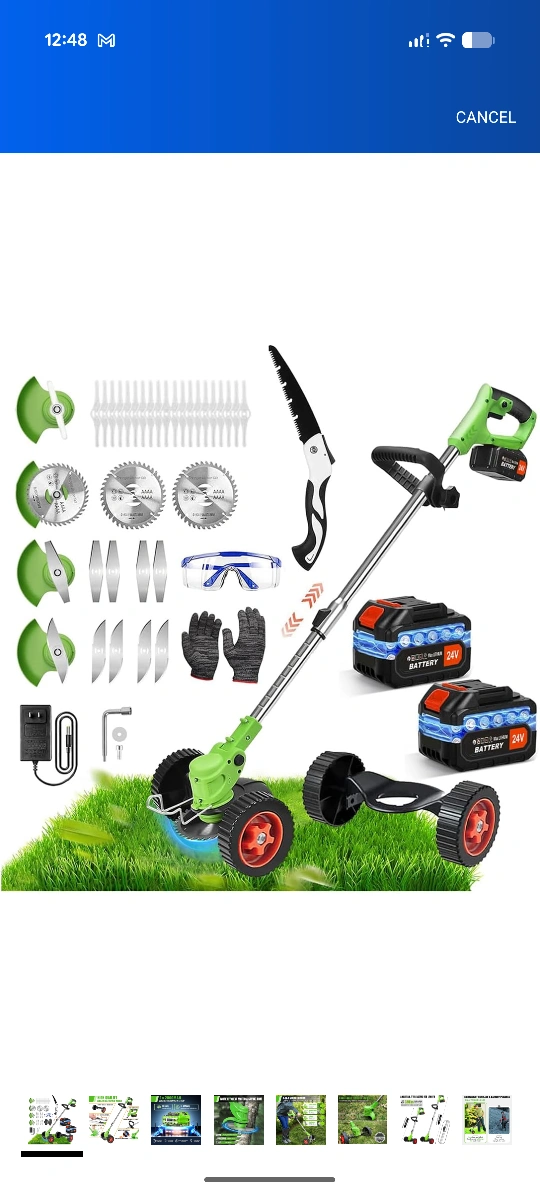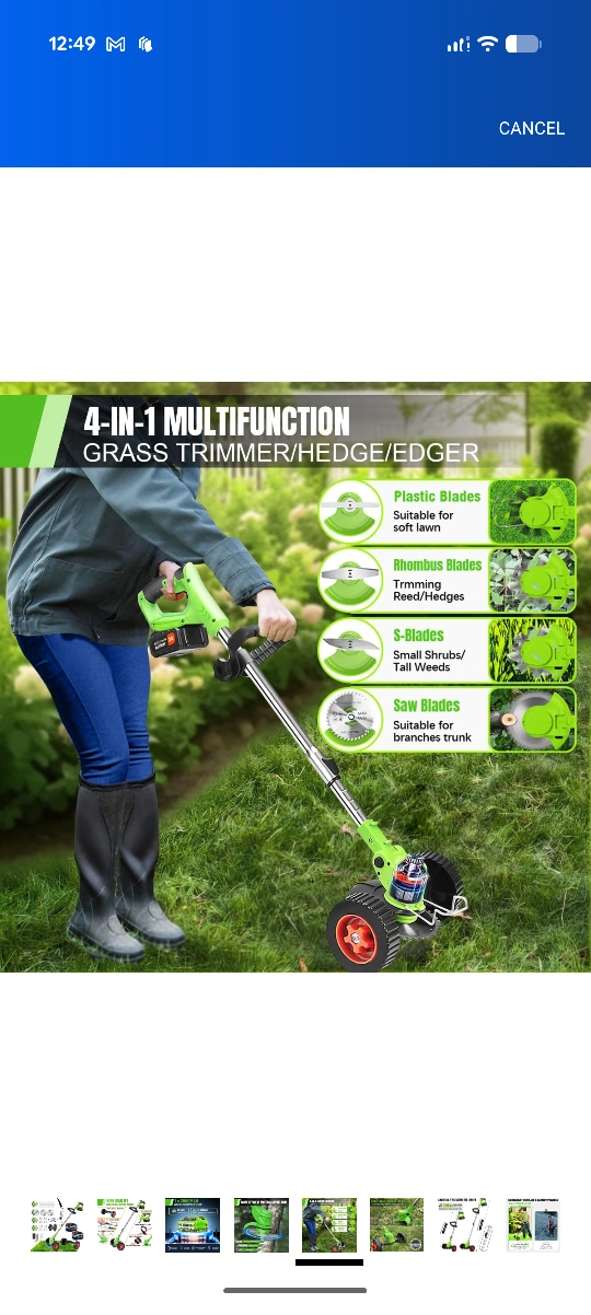 60moving sale. Get your lawn looking great with this 4-in-1 multifunction grass trimmer! It works as a hedge trimmer and edger too, making it super versatile. The cordless electric weed wacker has a comfortable non-slip handle and an adjustable cutting path from 33 to 47 inches. It also comes with different blades for various tasks, including plastic blades for soft lawns, rhombus blades for trimming hedges, and saw blades for branches and trunks. used only 1 time