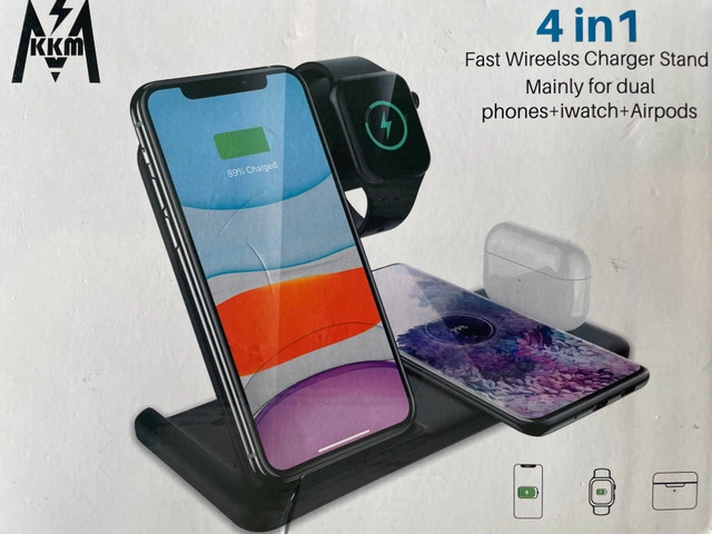 34Hi all, up for sale is a 4 in 1 wireless changing stand. Can be used for two cell phones Apple Watch and AirPods. Open box. Thanks.