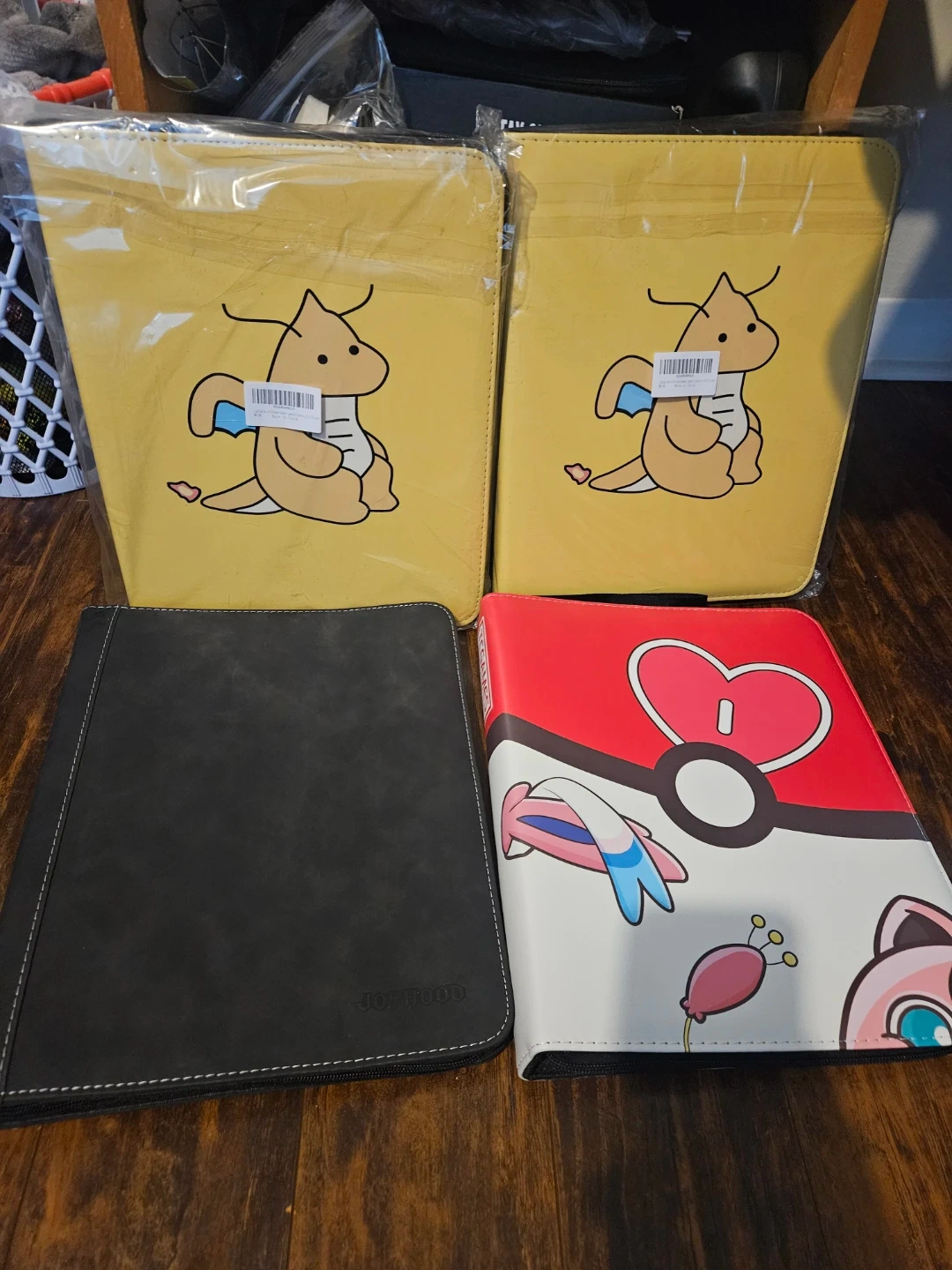 Brand New Binders ☆3 ring Binders Holds up too 800 cards I don't believe ☆20each Binder Dragonite (2 Available ) Full Black Binder (1 Available) Silveon Binder (1 Available) ⭐⭐⭐⭐⭐Marketplace Seller ☆Shipping Available at buyers expense ☆Prefer Cash ☆Excepting Etranfer and Paypal Check out my other stuff listings