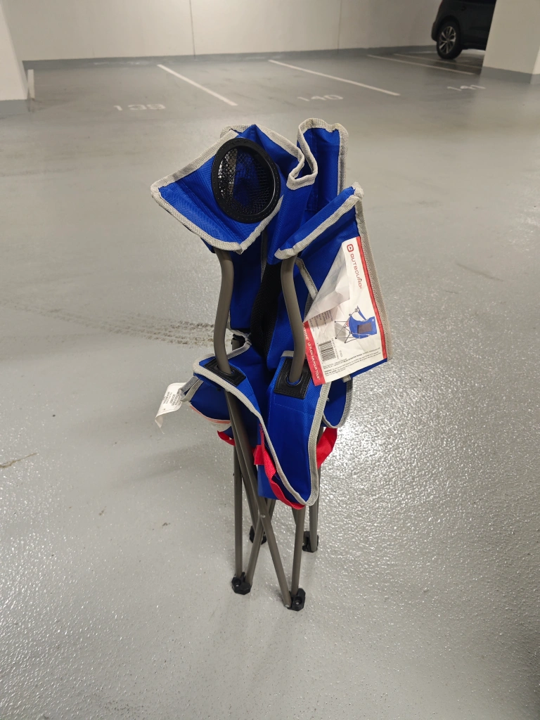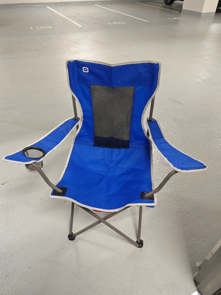 This Outbound portable camping chair is perfect for your outdoor adventures! It's in great shape and ready to go. The chair is blue and features a convenient cup holder. Lightweight and easy to carry, it's ideal for camping, picnics, or relaxing in the backyard. $30 for 4 chairs