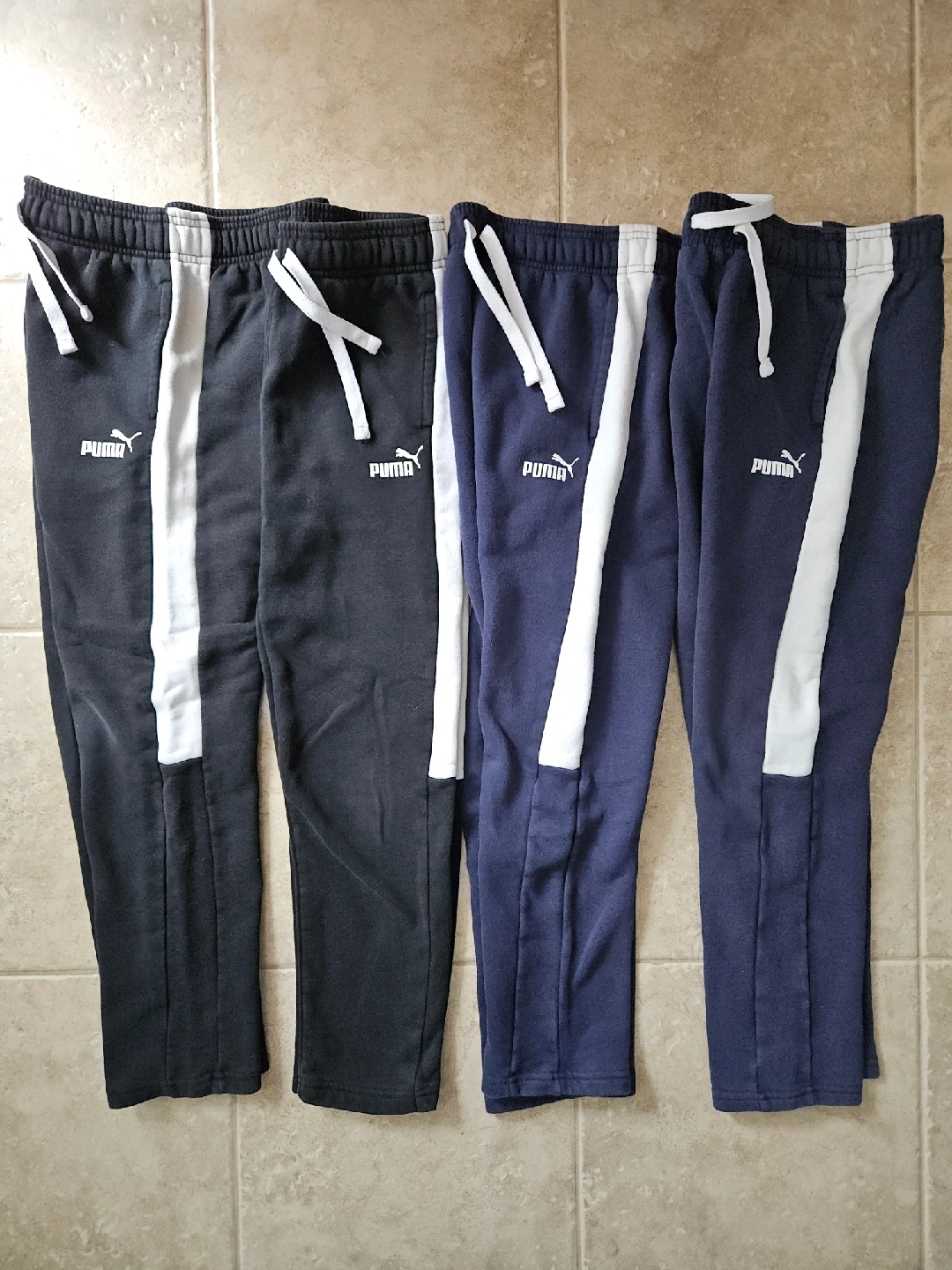 Price includes 4 pants - see condition info. Puma kids sweatpants in size L (10/12). - 2 Black and 2 navy blue. - All have wash wear, colour fading, no rips. Milton pu, cash only, no holds.