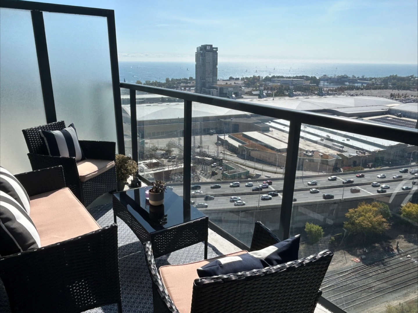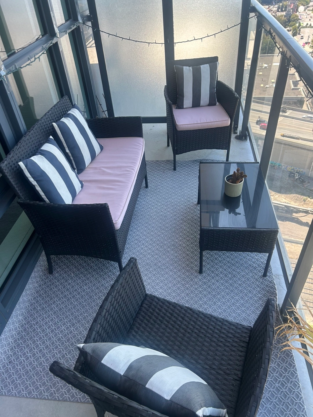 814-Piece Outdoor Patio Set in an excellent Condition including: • 1 loveseat • 2 armchairs • 1 coffee table with glass top ✔️ Sturdy and weather-resistant frame ✔️ Modern design that fits any balcony, patio, or garden Condition: Gently used, well maintained. Pickup only.