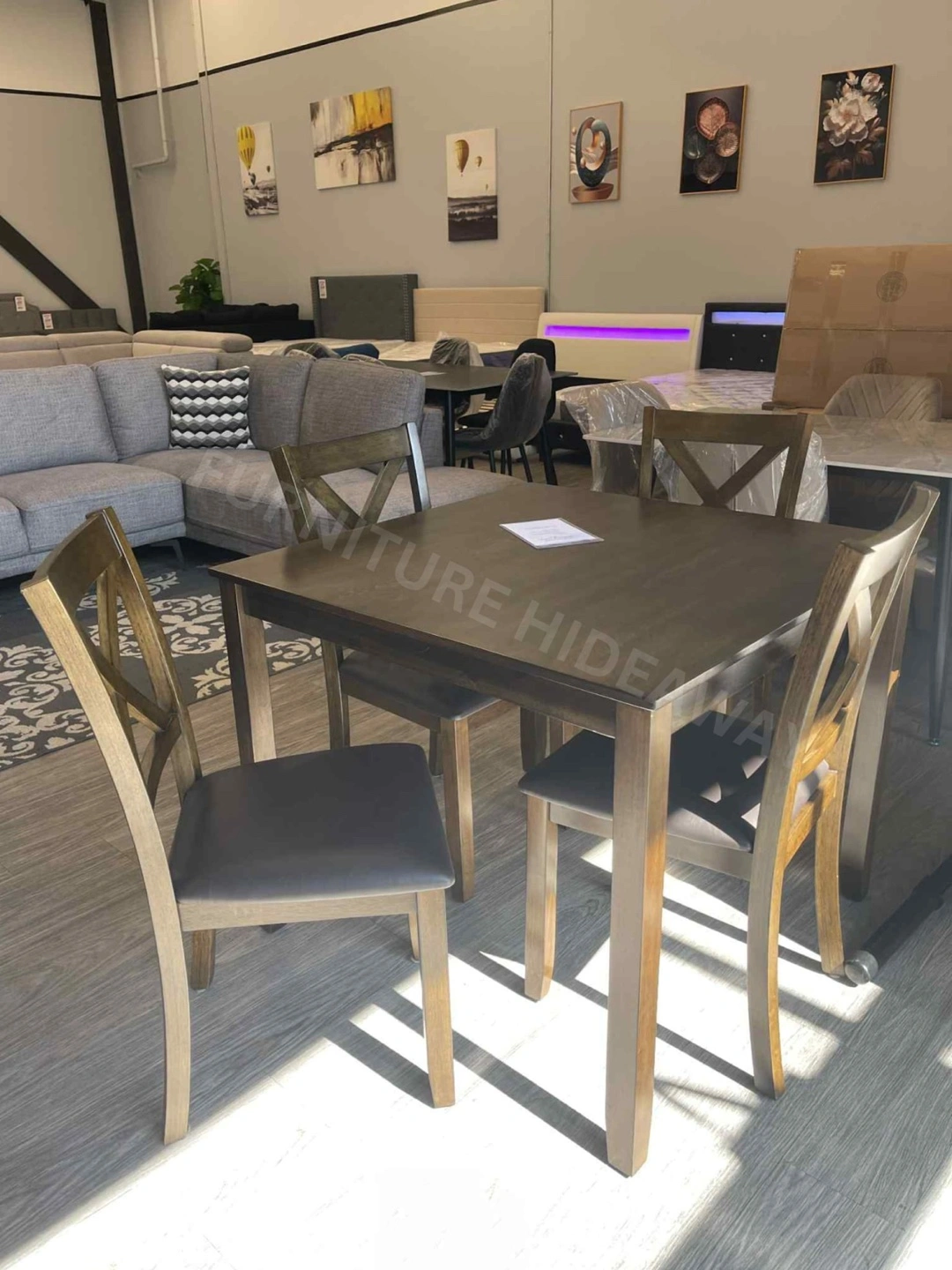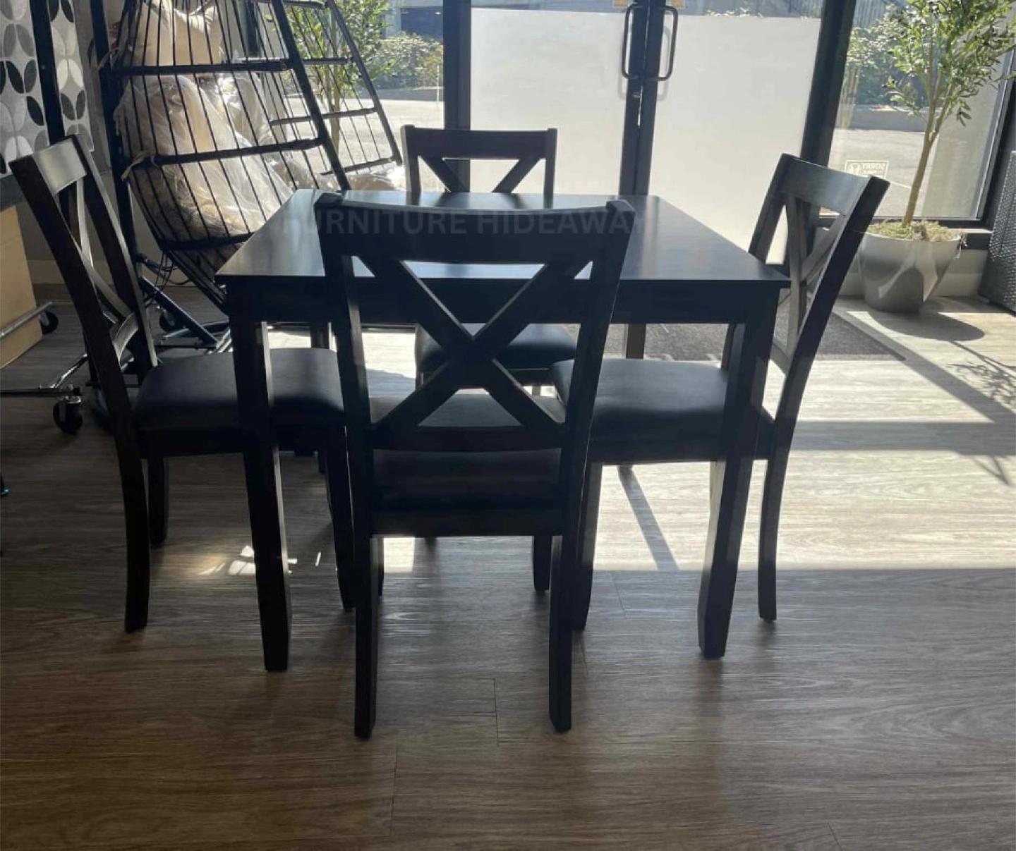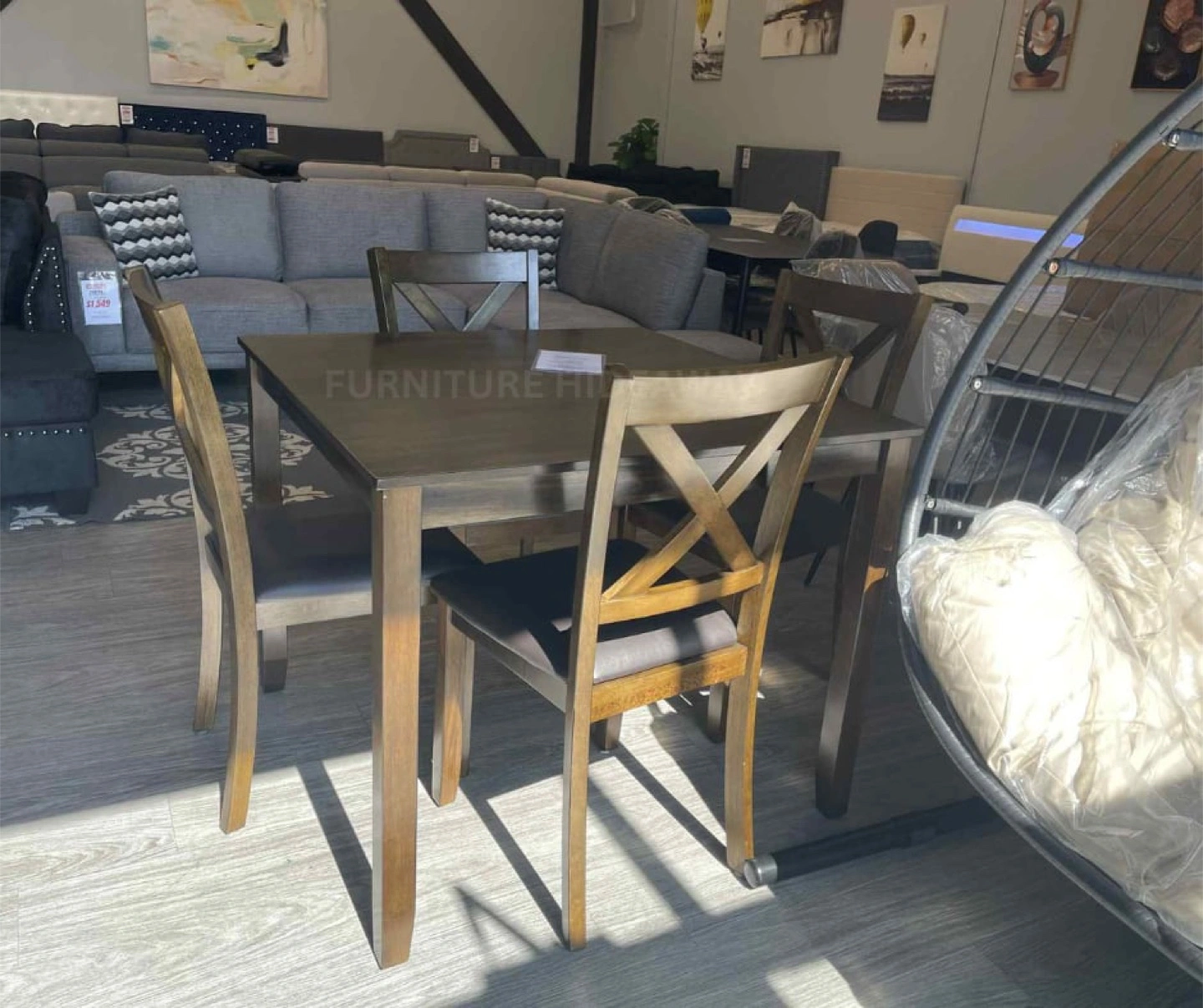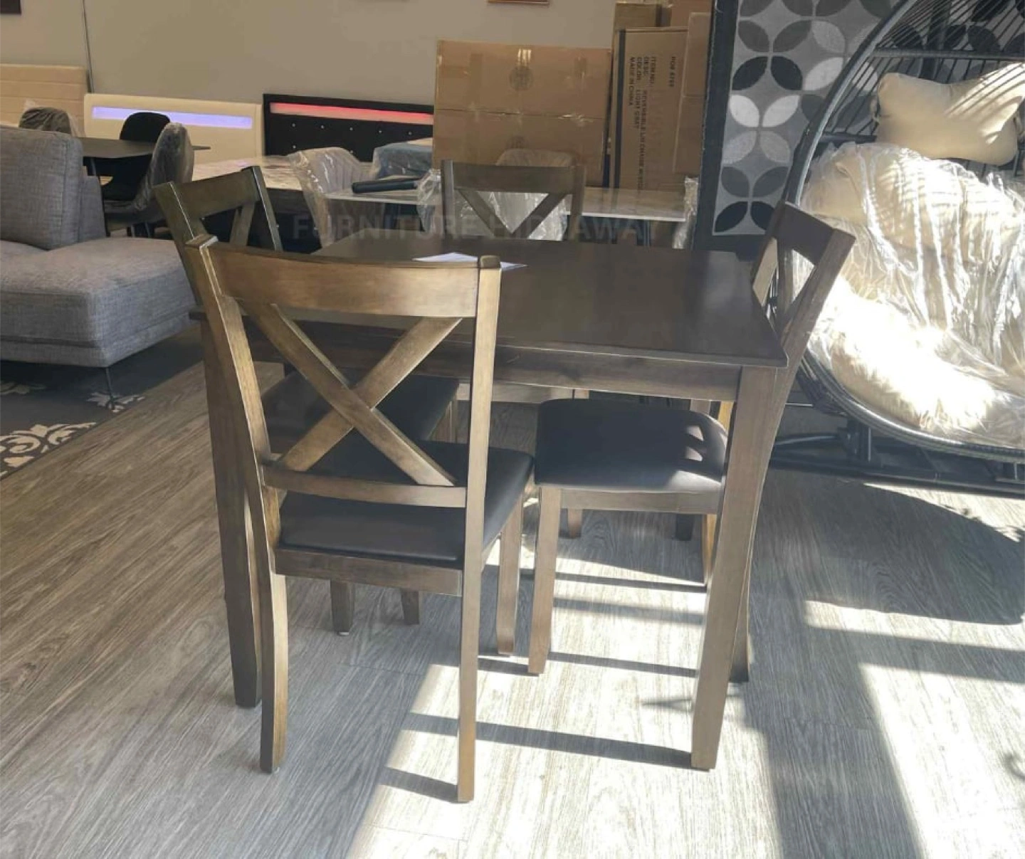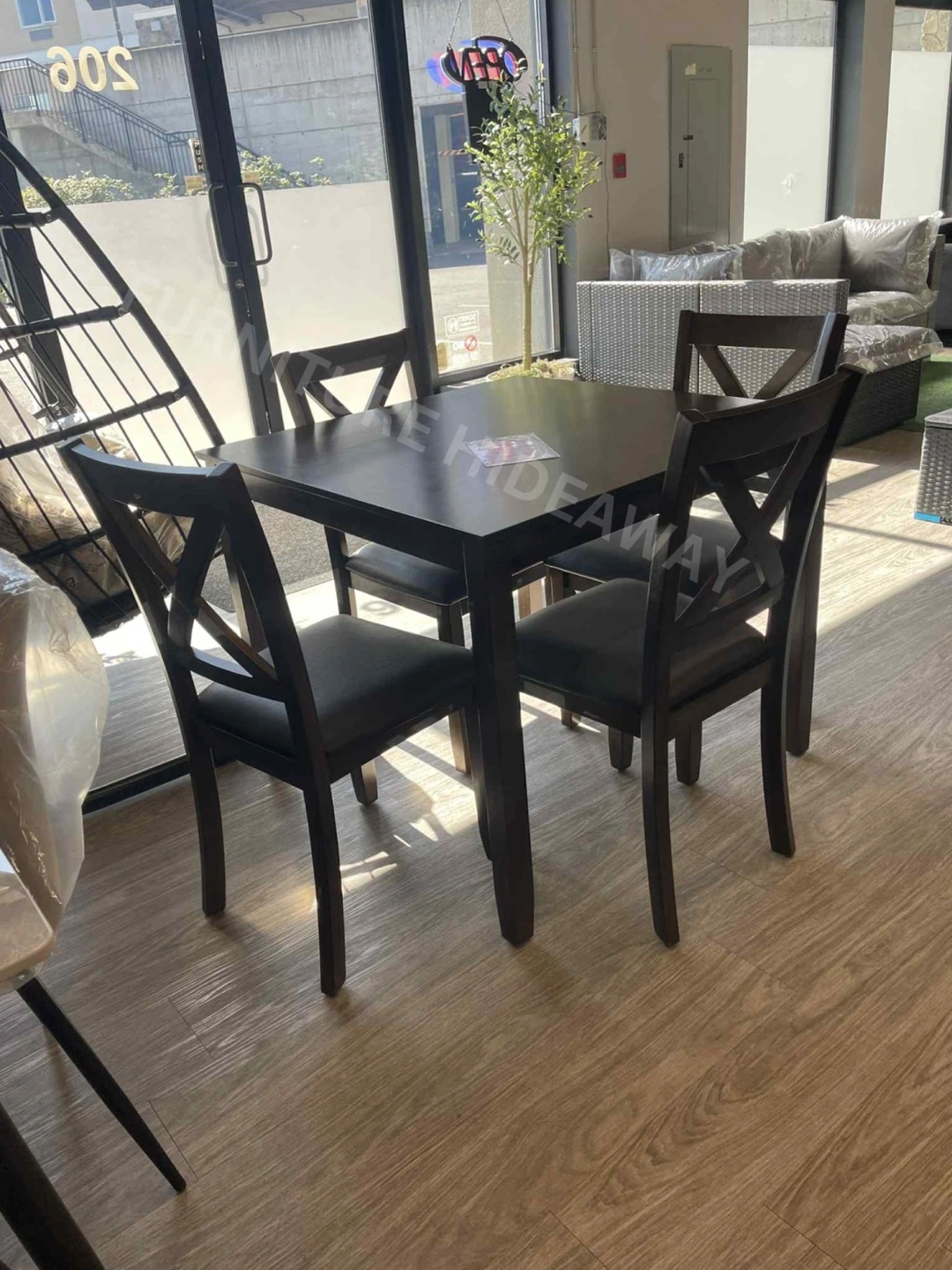 20- Espresso colour - Padded faux leather Chairs with cross-back design - Sturdy wood with warm brown finish - warranty included 📍206-314 Wale Road, Victoria Weekdays 11-7pm Weekends 10-6pm www.furniturehideaway.ca