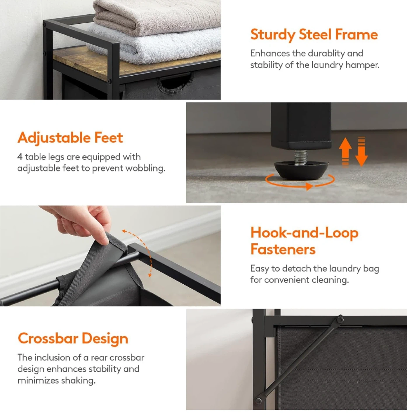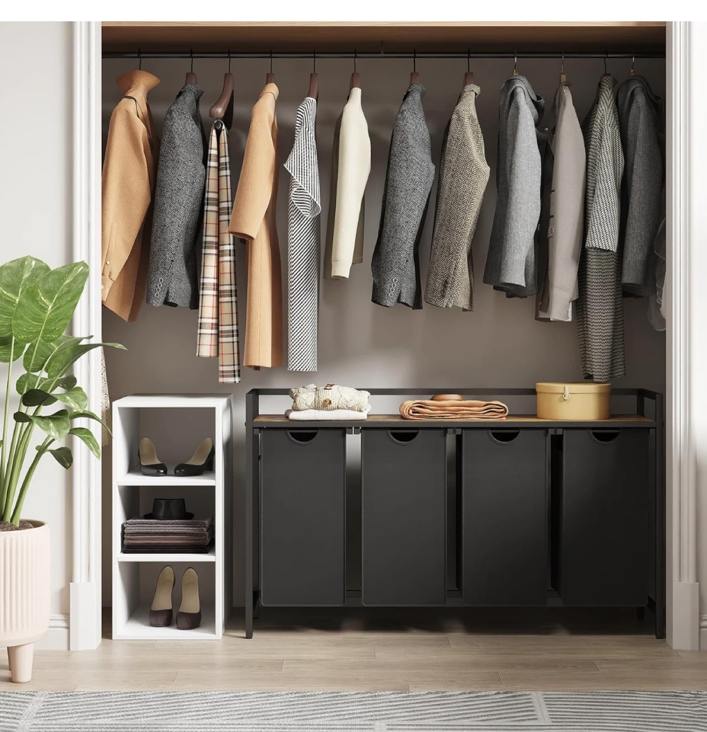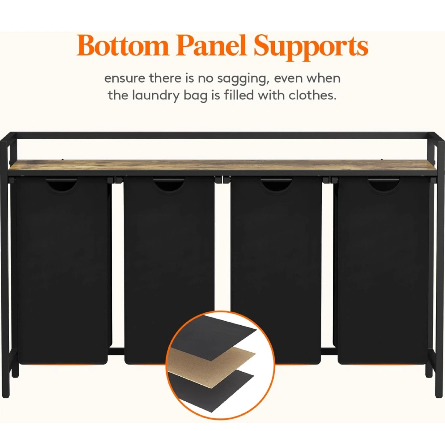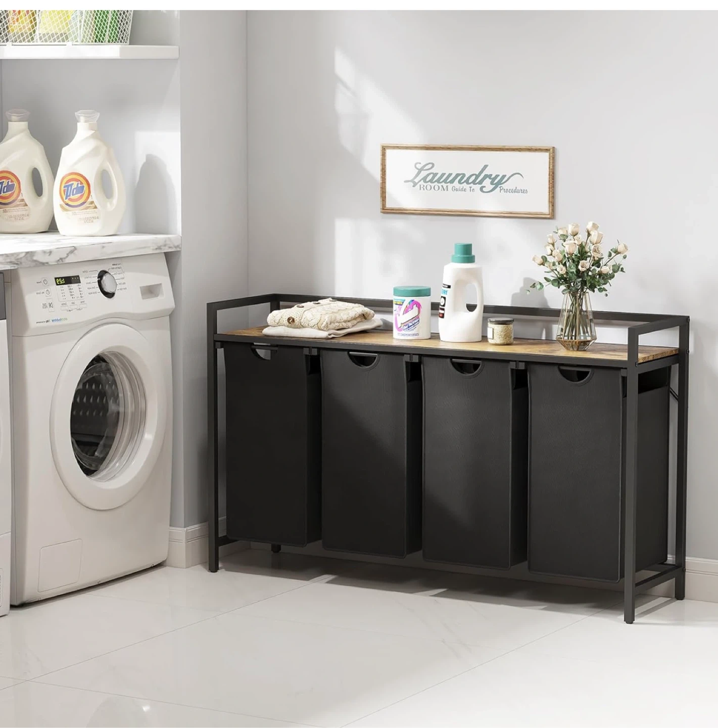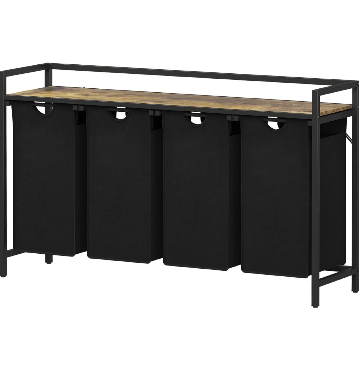 23This laundry sorter is a great addition to any home! It features a 4-section design with pull-out bags, making laundry day a breeze. The bottom panel supports ensure no sagging, even when the bags are full. Dimensions: - 48.8" (124cm) wide - 13.1" (33.4cm) deep - 29.9" (76cm) high The bags are easily removable, and the unit provides ample space for sorting your clothes..!