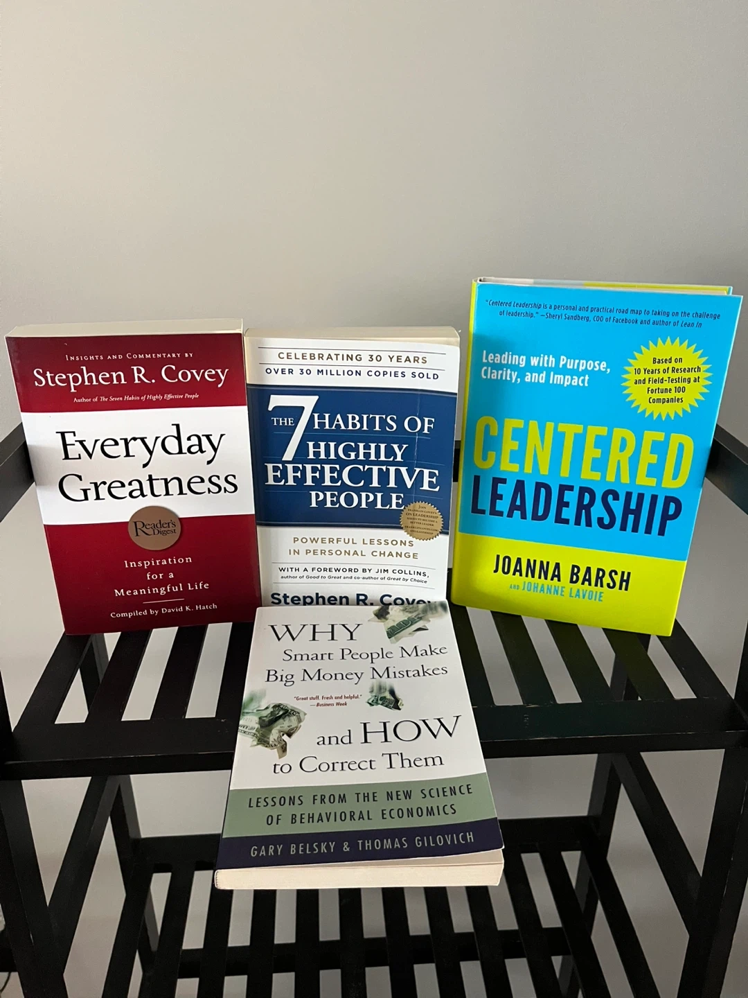 41Pick up in Utopia. Price is for all or $10 each. Selling a set of four self-help books in great condition! Included are: - Everyday Greatness by Stephen R. Covey - The 7 Habits of Highly Effective People by Stephen R. Covey - Centered Leadership by Joanna Barsh and Joanna Lavoie - Why Smart People Make Big Money Mistakes and How to Correct Them by Gary Belsky & Thomas Gilovich