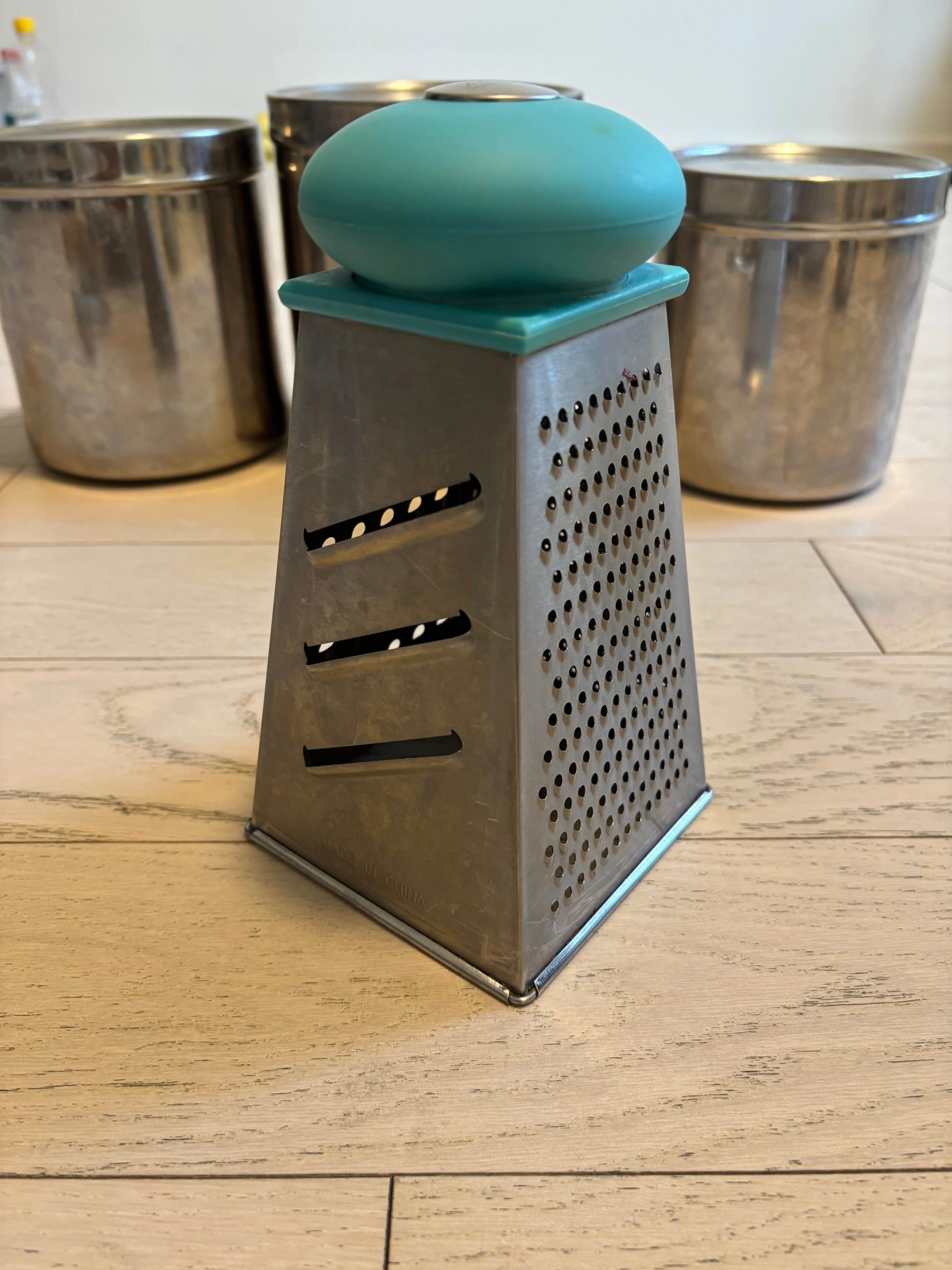 A 4-sided grater, often called a box grater, is a common and versatile kitchen tool. It typically features a rectangular, box-like shape with a handle on top and four distinct grating surfaces on the sides, each designed for a different task: