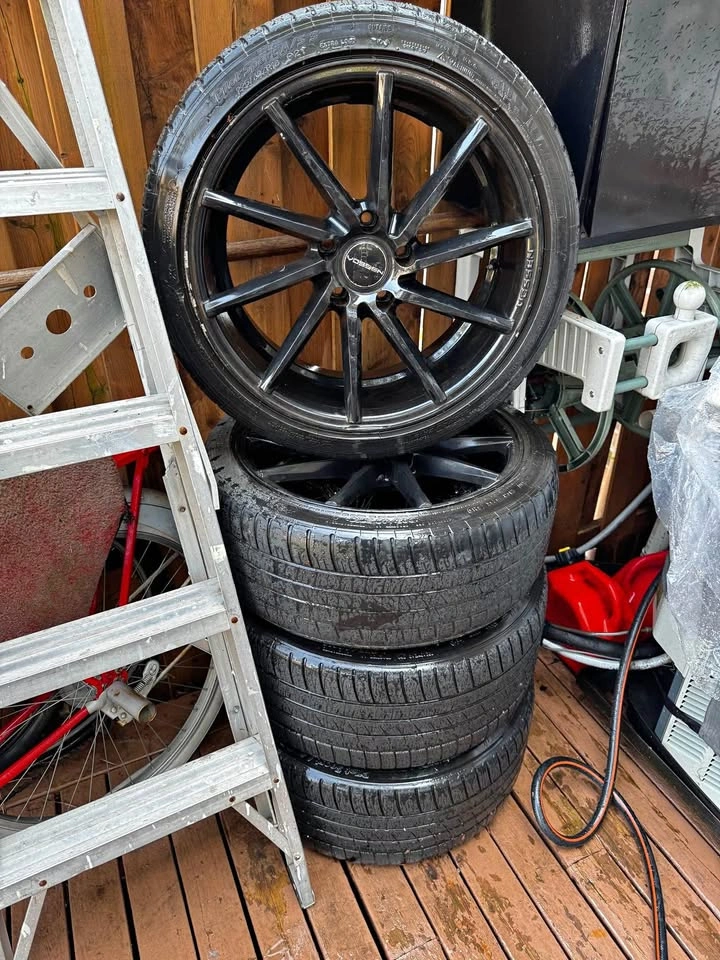 Selling a set of staggered Vossen CVT rims that used to be on a 2012 Lexus IS350. 2 front rims are 225 40ZR/18 - tire needs to be replaced. 2 rear rims are 235 40R/18 - tires are 60%. ET 35. Overall rims are 8.5/10, minor scuffs. Asking for $550, brand new goes for around $1200 without tires. Includes the hub centric rings free! These were on a Lexus IS350 so please find out the thread pattern for this car.