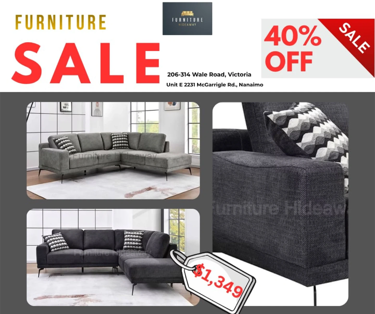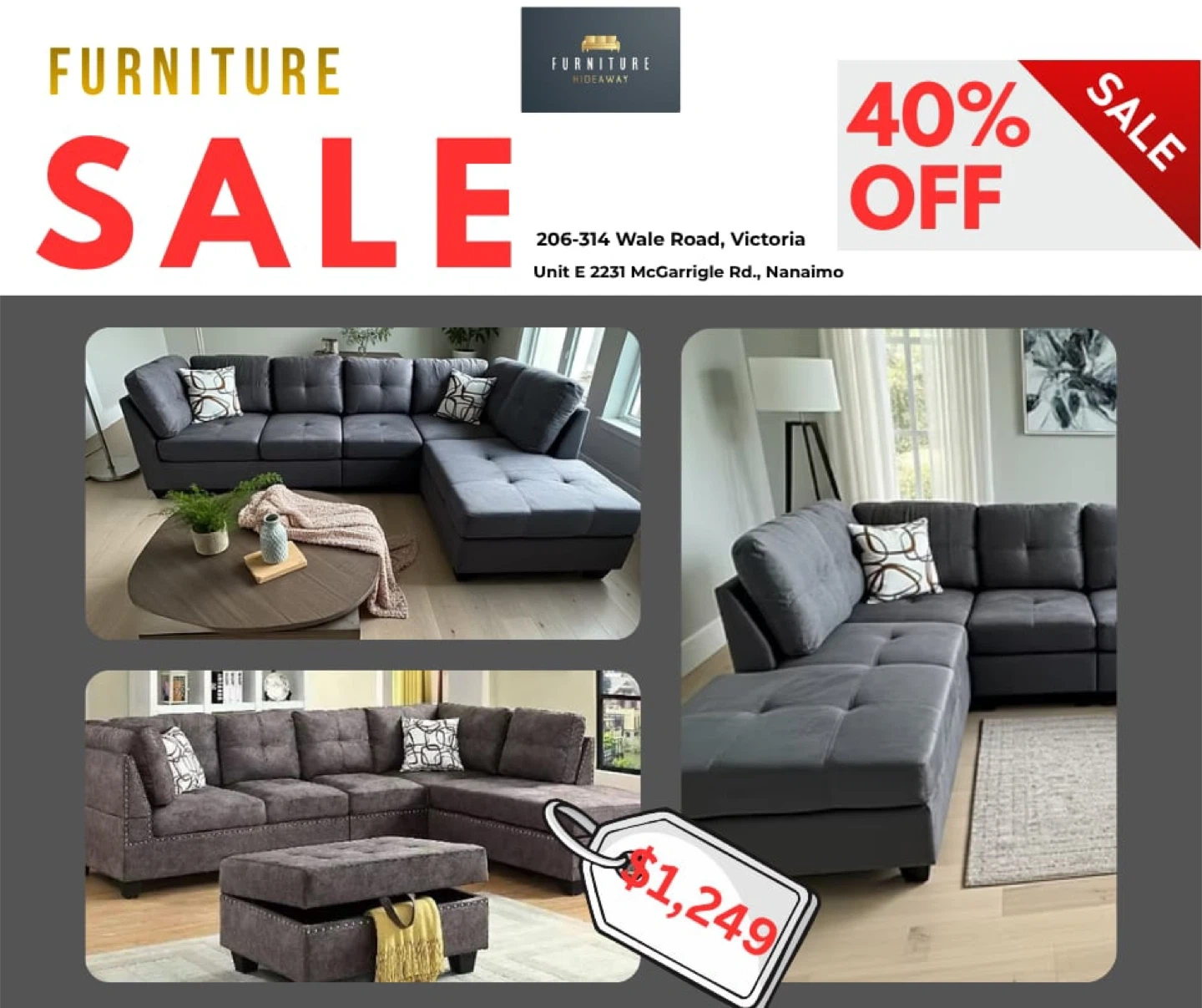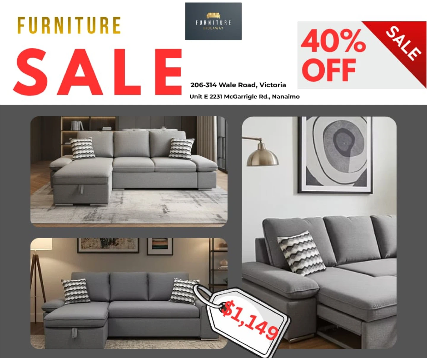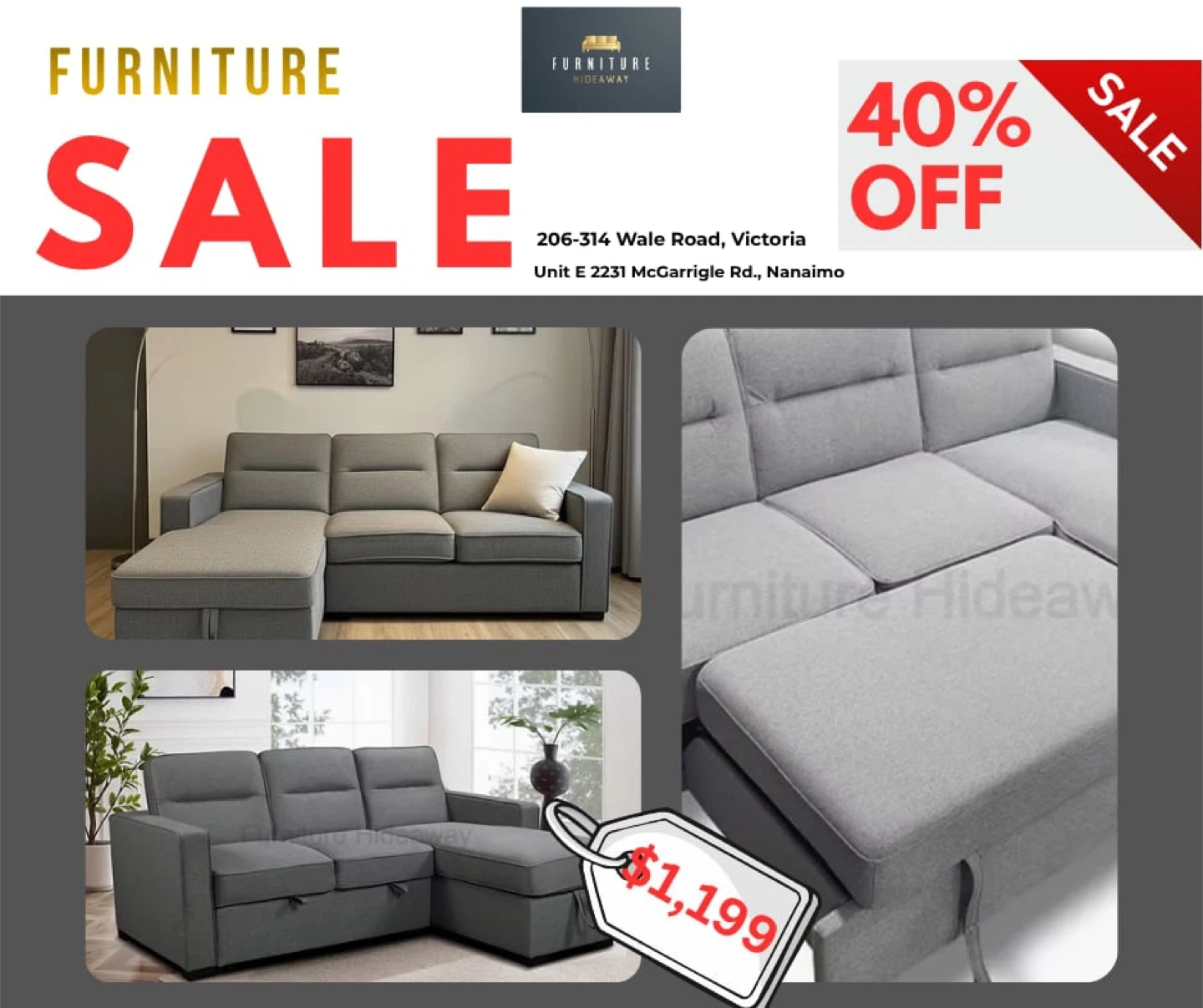 20All couches are brand new and comes unassembled. Includes warranty.🔥 Ranges from $649- $1,899‼️ Feel free to visit our showroom: 📍Victoria: Unit 206-314 Wale Rd Colwood ☎️ Phone: 250-858-5164 Open daily: ⏰Mon-Friday: 11am-7pm ⏰Weekends: 10am-6pm ⏰Holidays ** 11am-5pm** 📍Nanaimo: Unit E -2231 Mcgarrigle Rd, Nanaimo ☎️Phone : 778-700-8382 ⏰Monday- CLOSED ⏰Tuesday to Sunday: 10am-6pm www.furniturehideaway.ca