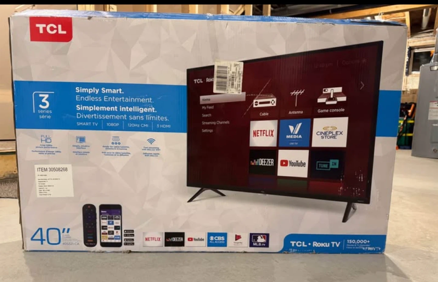 Selling my 40” TCL Roku Smart TV in excellent condition, comes with: ✅ Amazon 4K Fire Stick included ✅ Full HD 1080p resolution ✅ HDMI, USB, Bluetooth, WiFi connectivity ✅ Comes with original box and remote Perfect for streaming Netflix, YouTube, Disney+, Prime Video, and more. 📍 Located in Calgary NE, Alberta 💰 Price:$250