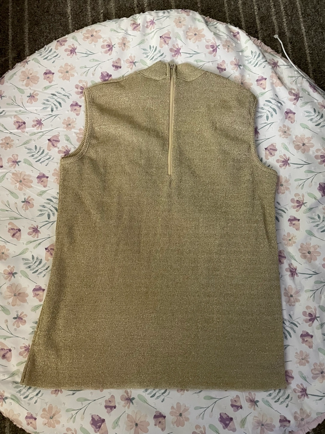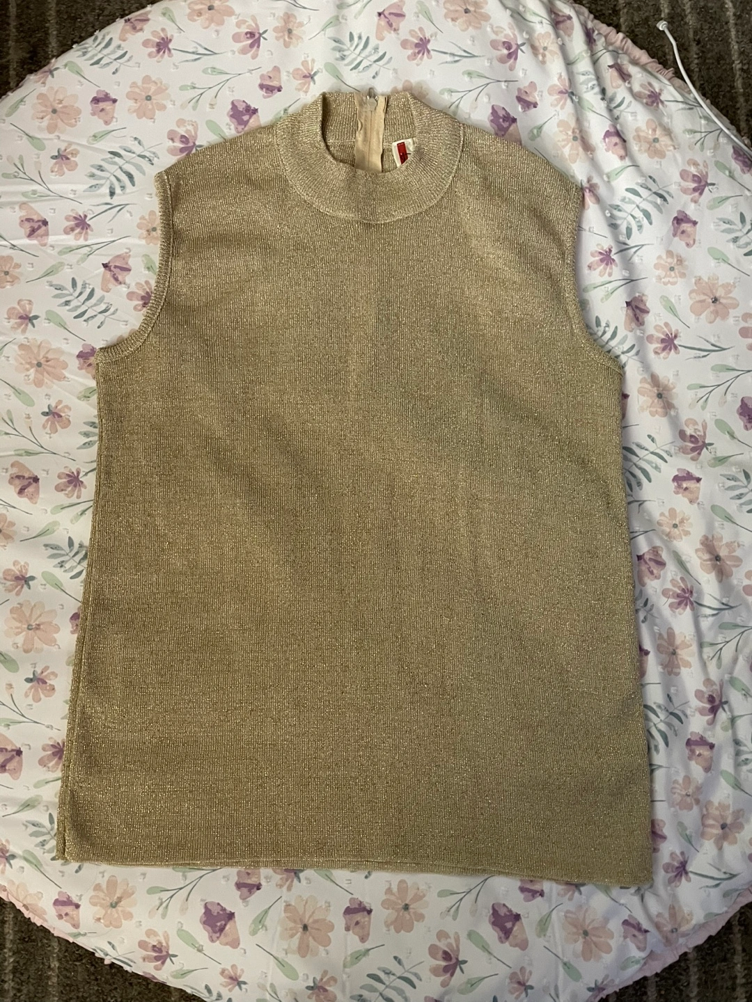 1000+Beautiful gold metallic sleeveless top. Mock neck with a zipper at the back. Soft knit fabric. Relaxed fit. Like new condition! No damages, stains or discolouration!