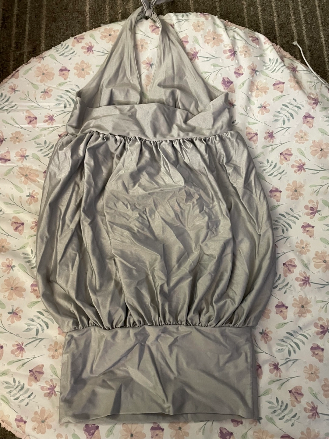 Silver mini dress. Halter neck. Bubble hem. Size small. Great for a night out. Y2K style in like new condition! No damages, stains or discolouration!