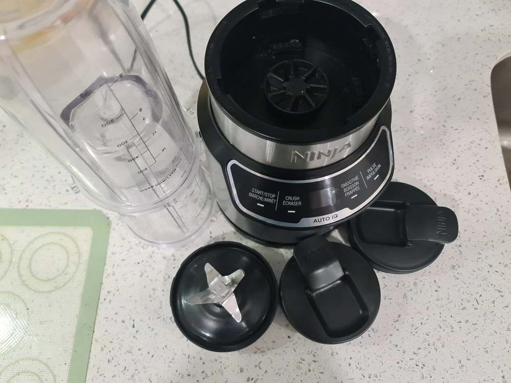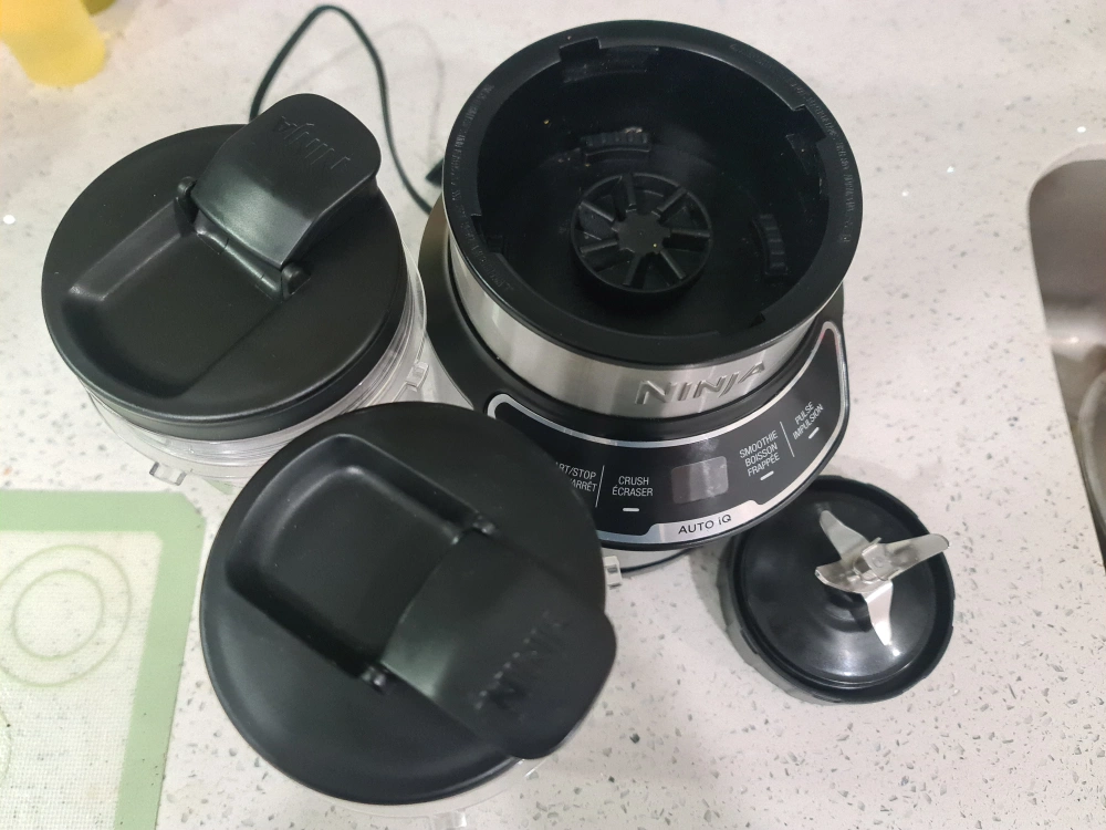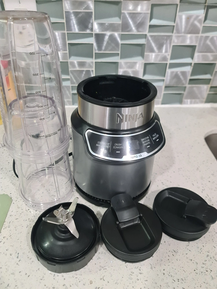 Personal blender. Multiple cups and lids included. Good condition. Auto IQ technology. Multiple settings. $120 new