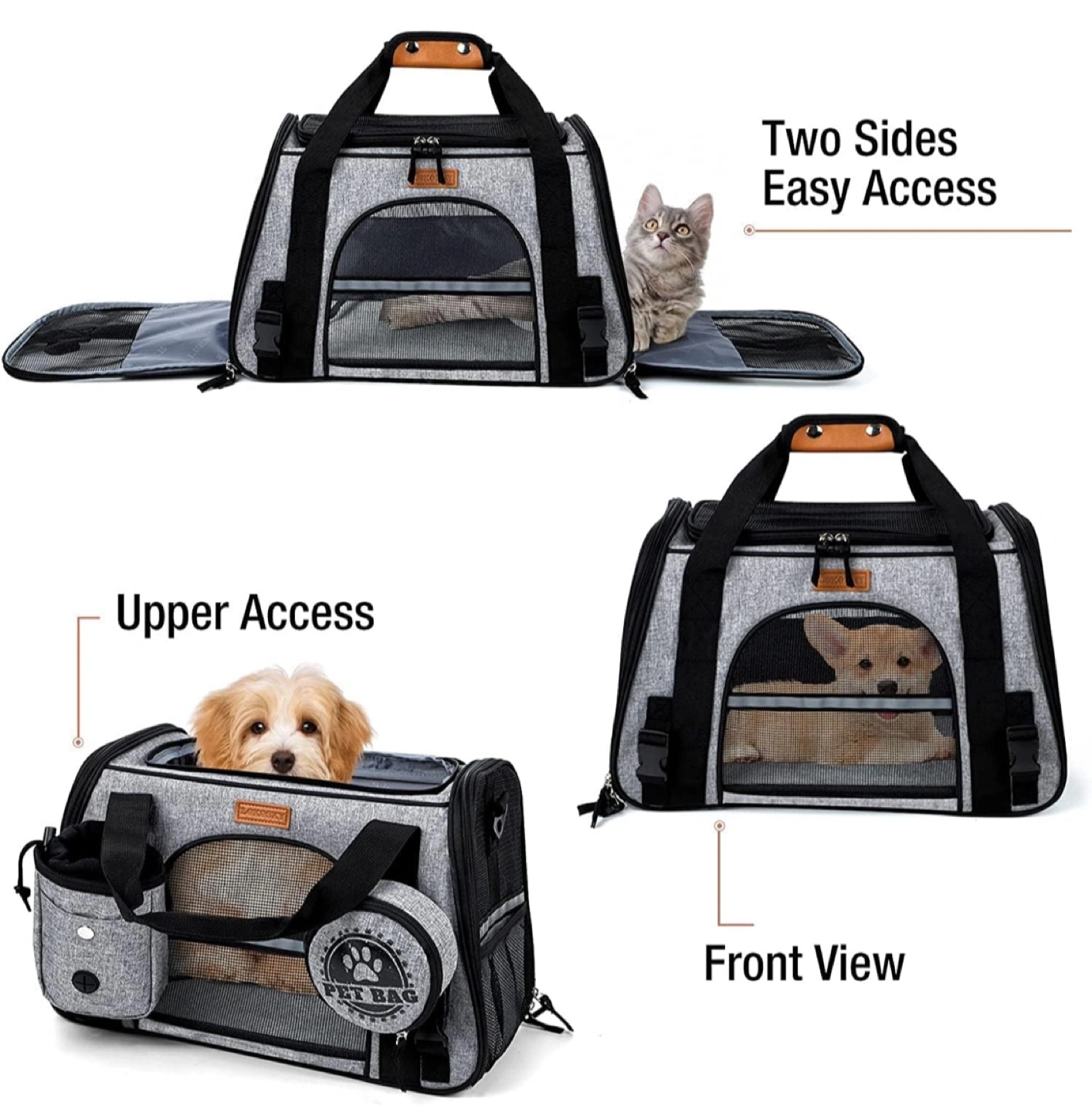 Ventilated and safe with breathable mesh from three different angles to ensure normal circulation of air inside. You can also open the bag from the top to access your pet and reassure it in the waiting room