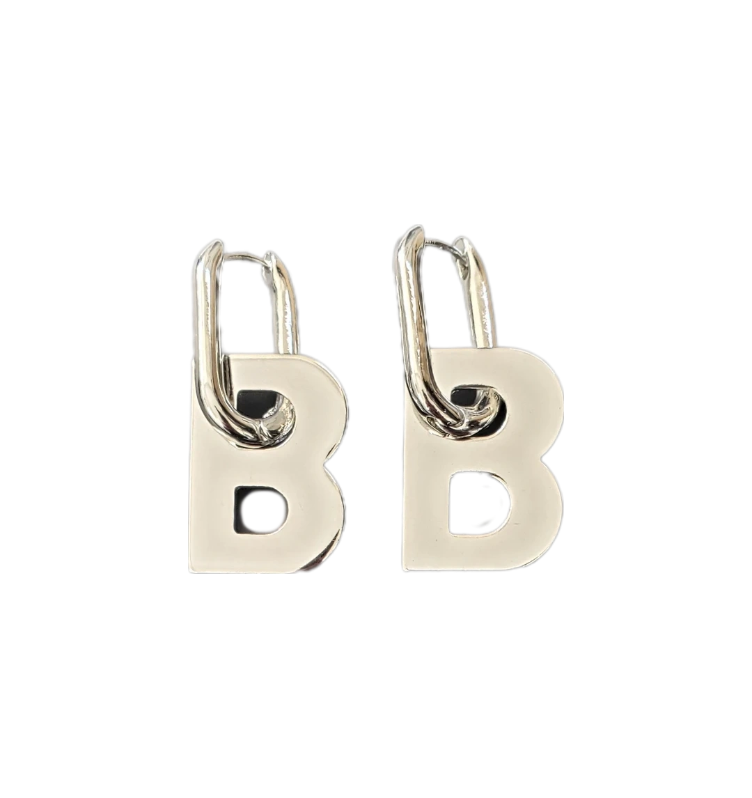 644Designer inspired silver B hoop earrings. 2023 collection. Refer to last pic for reference. Pickup west toronto.
